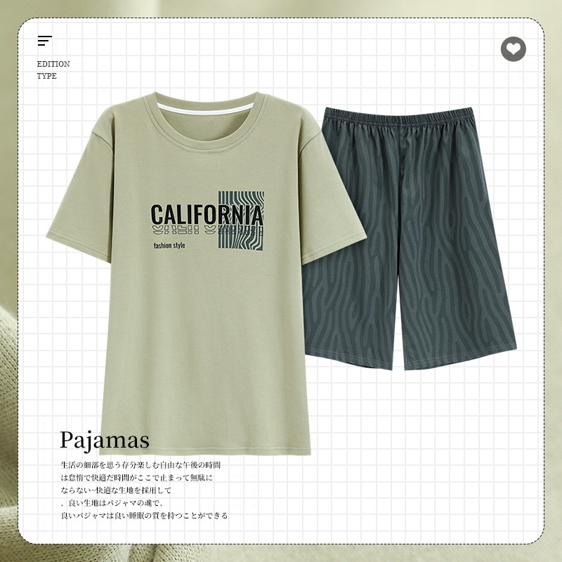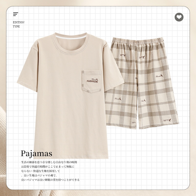 100%Cotton Pajamas For Men Summer Thin Short-sleeved Shorts Teen Boys Summer Home Wear Suits