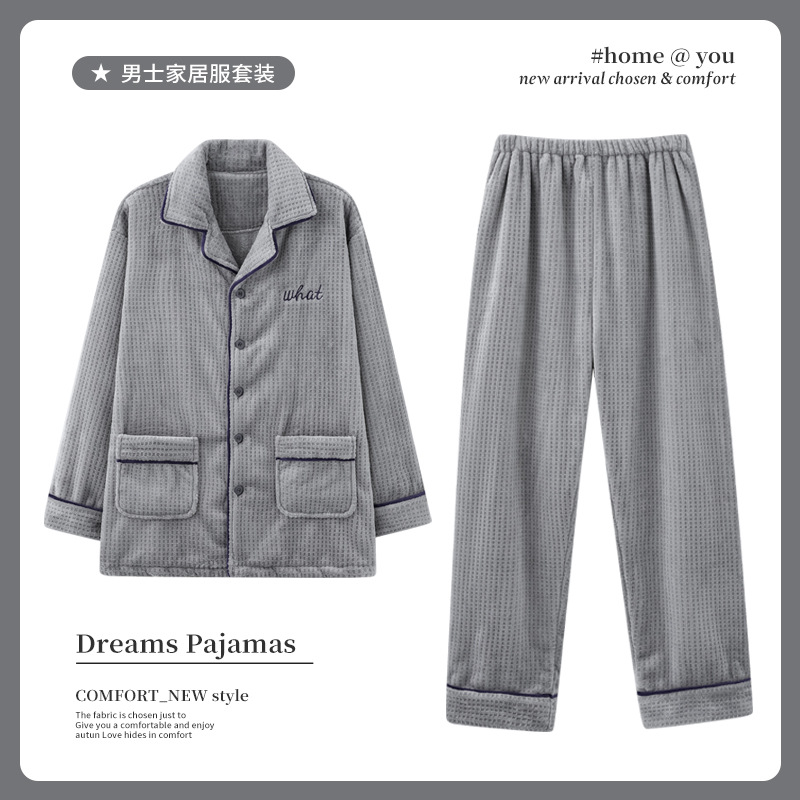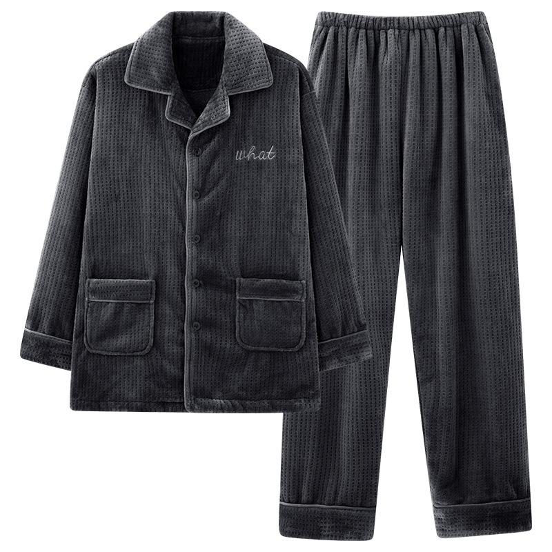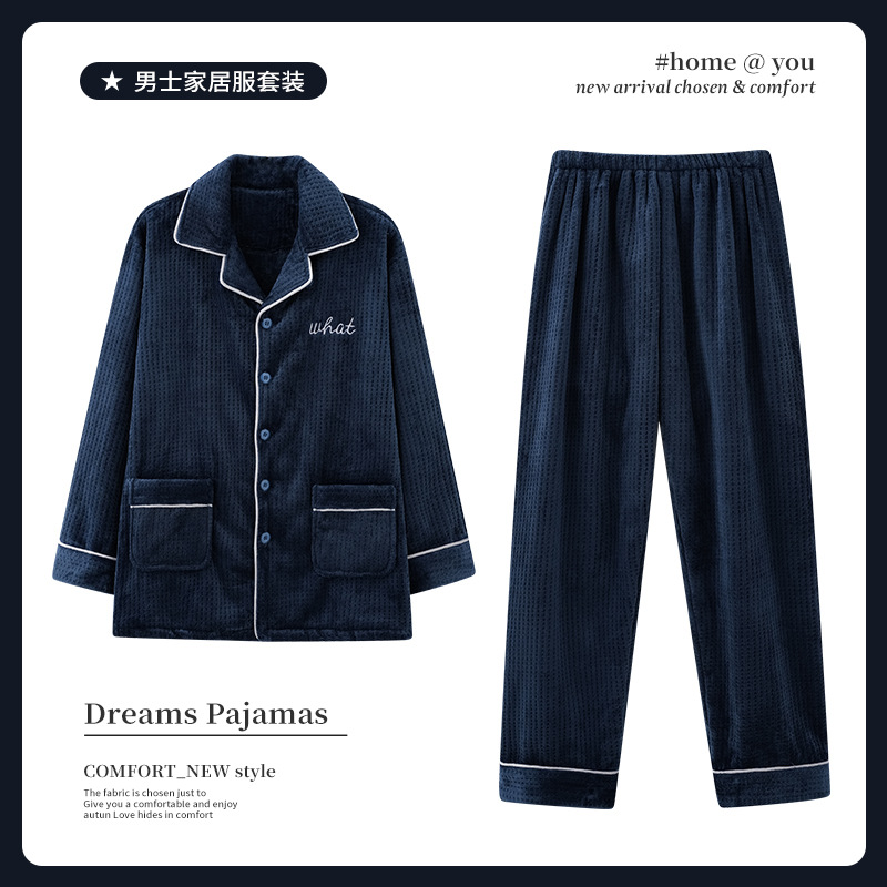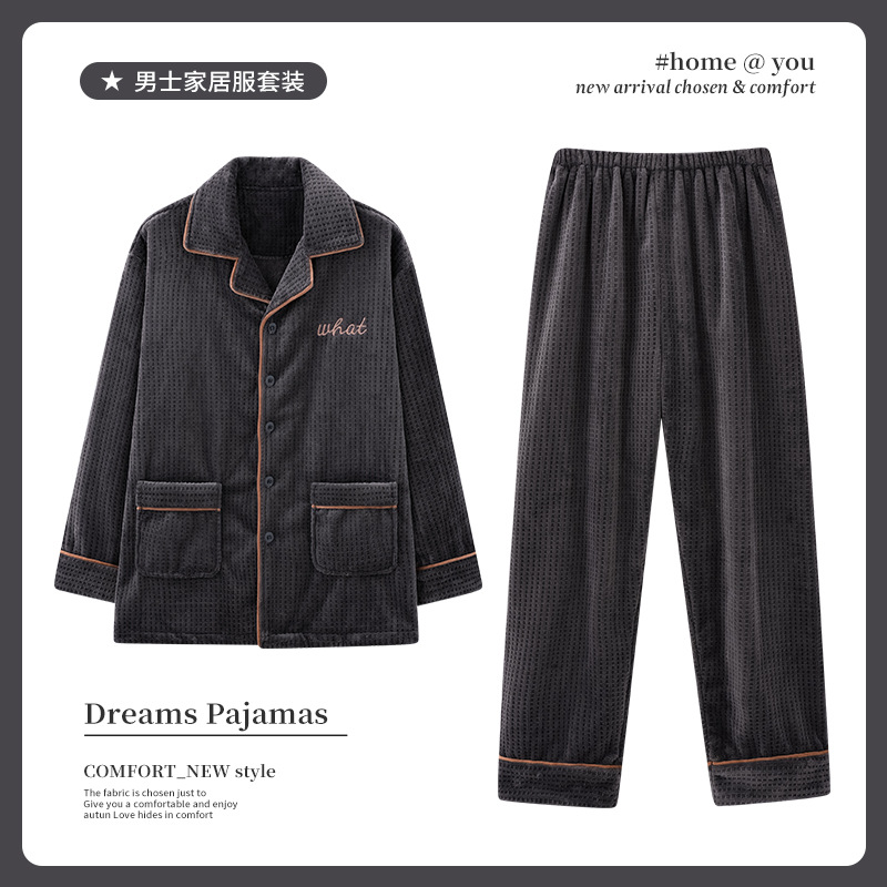Coral Velvet Pajamas For Men In Autumn And Winter Thickened And Velvet Warm Winter Men's Flannel Outer Wear Home Clothes Set