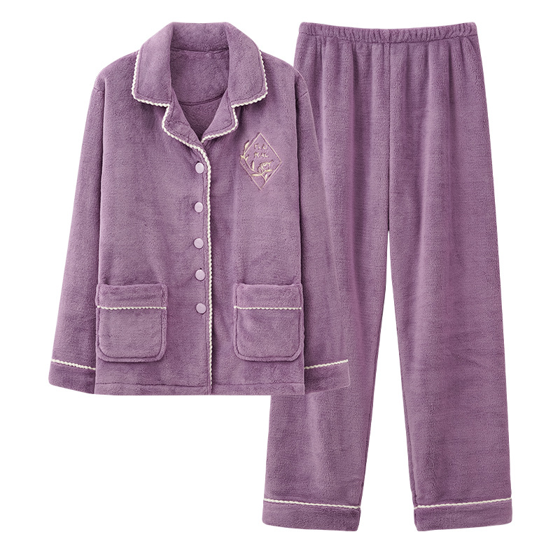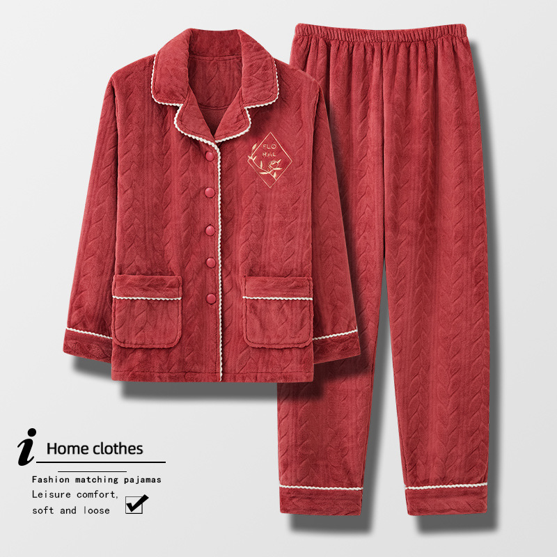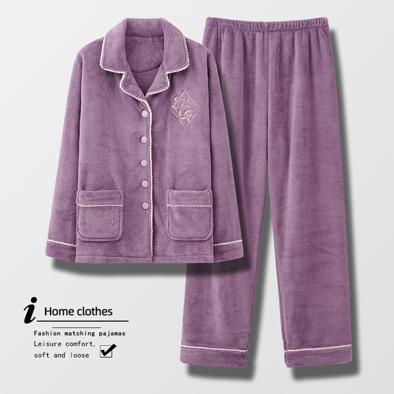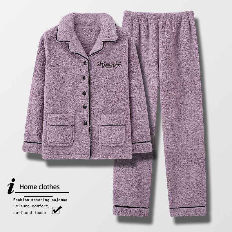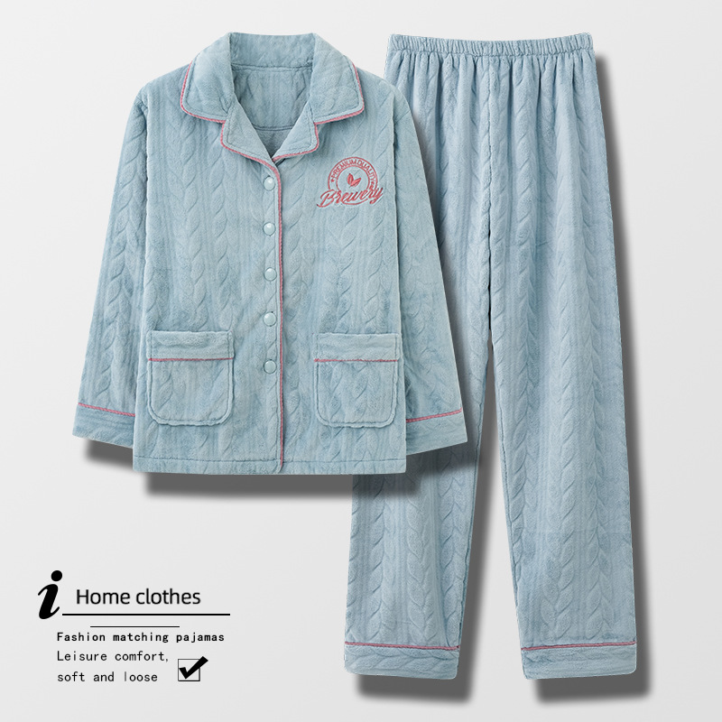 Coral Fleece Pajamas For Women Autumn And Winter Winter Style Plus Velvet Thick Warm Flannel Home Clothes Large Size Suit