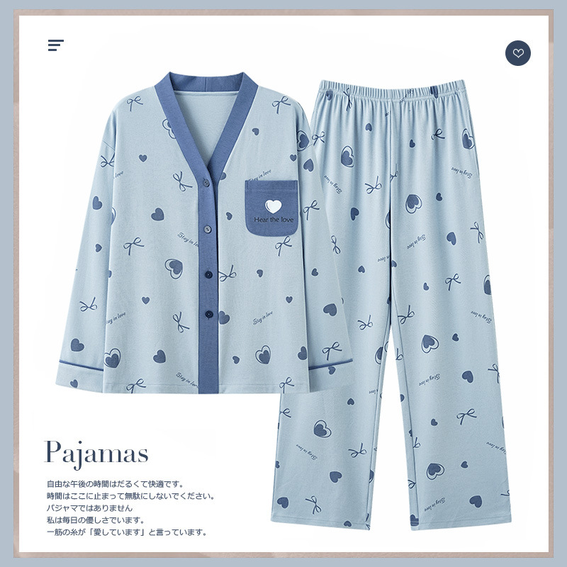 Pure Cotton Brushed Printed Pajamas For Women Spring And Autumn Long-sleeved Autumn Floral Loose Cardigan Pure Cotton Large Size Home Clothes Set