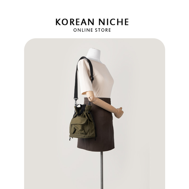 Korean Style Pleated Drawstring Nylon Tote Bag Women's Crossbody Bag Niche Summer Simple Casual Handbag