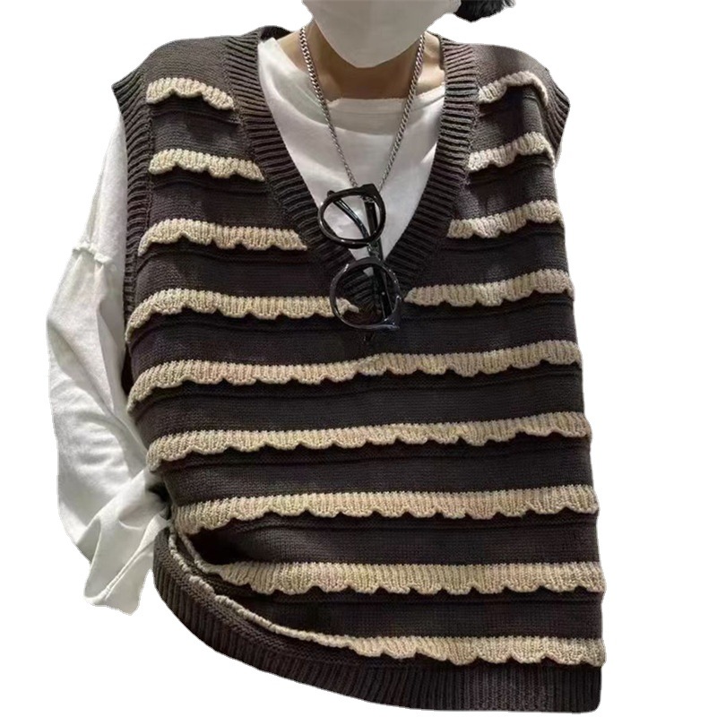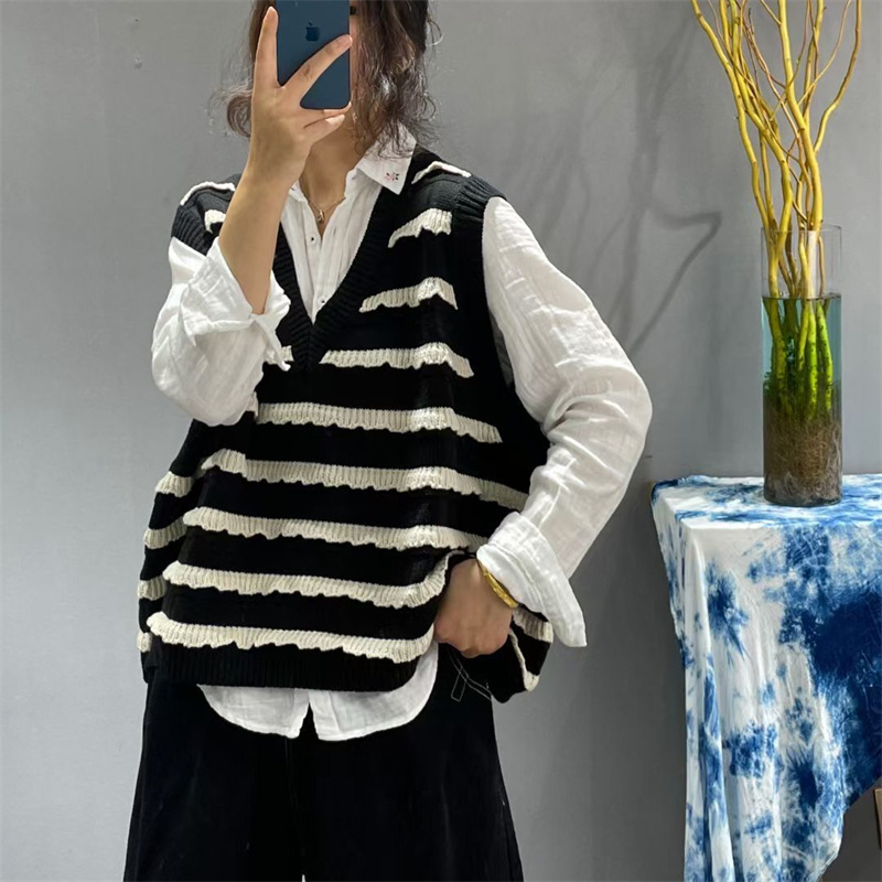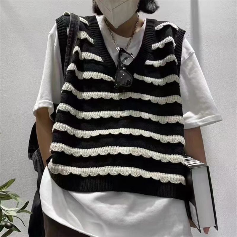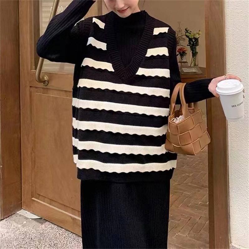 Contrast Striped Sweater For Women Plus Size Spring Fashion Versatile Slim Loose Vest Vest