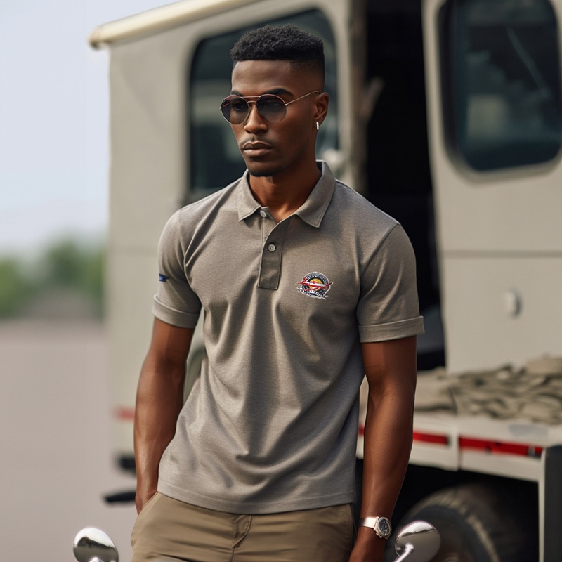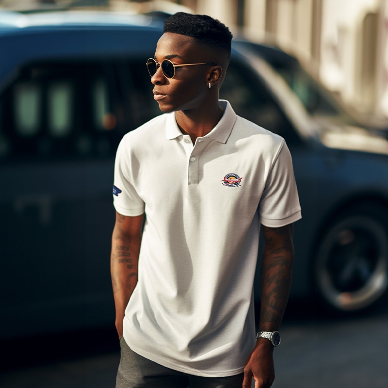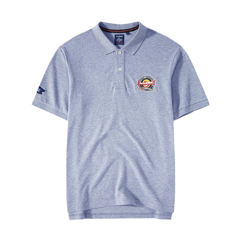 American Retro Short-sleeved Lapel POLOShirt Summer Embroidery Pure Cotton Washed Pique Cotton Mesh