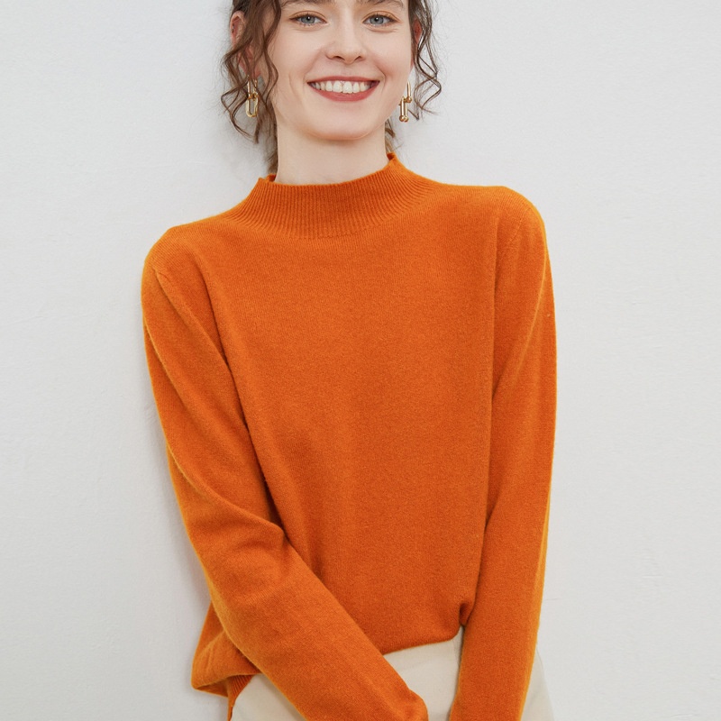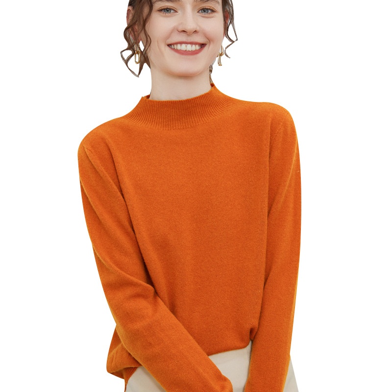 Seamless One-line Ready-to-wear Wool Sweater For Women,Half Turtleneck Wool Bottoming Shirt,Fashionable And Versatile Warm Sweater For Women On Behalf Of Women