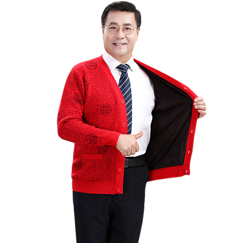 Middle-aged And Elderly Mother's Velvet Coat Autumn And Winter Warm"Fu"Dad's Cardigan Ethnic Style Tang Suit Jacket
