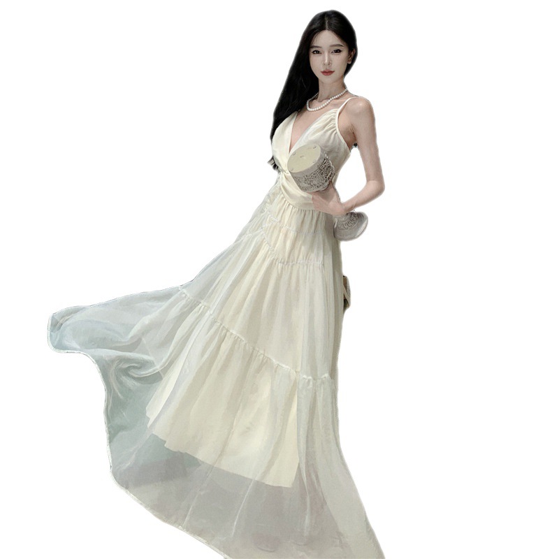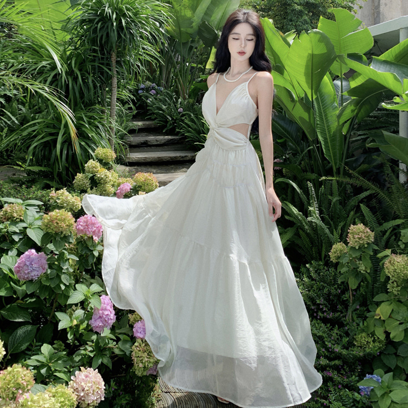 Heavy Industry Large Skirt Halo Pure Color Butterfly Suspender Dress Two Colors Female Summer Sanya Holiday Dress