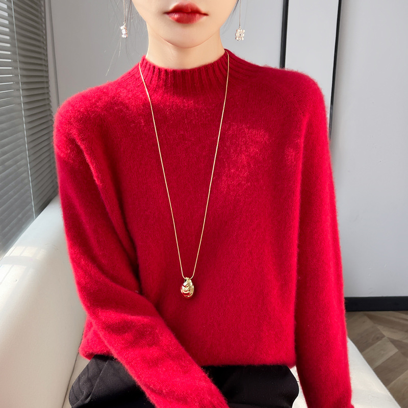 Streaming Seamless One-line Ready-to-wear Wool Sweater For Women Autumn And Winter Raglan Sleeve Sweater Half Turtleneck Wool Bottoming Shirt
