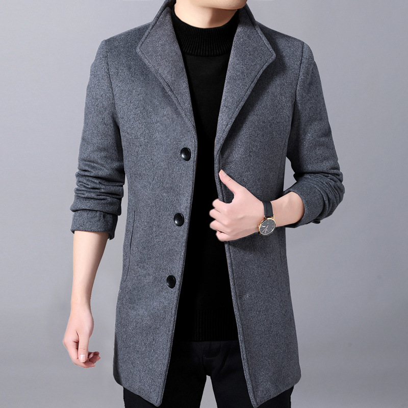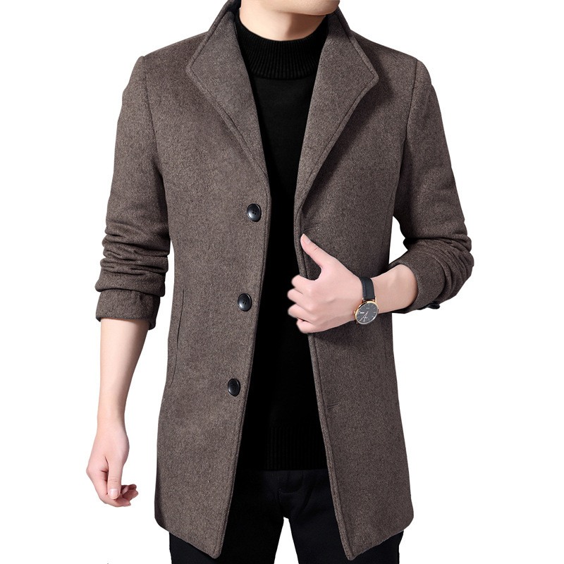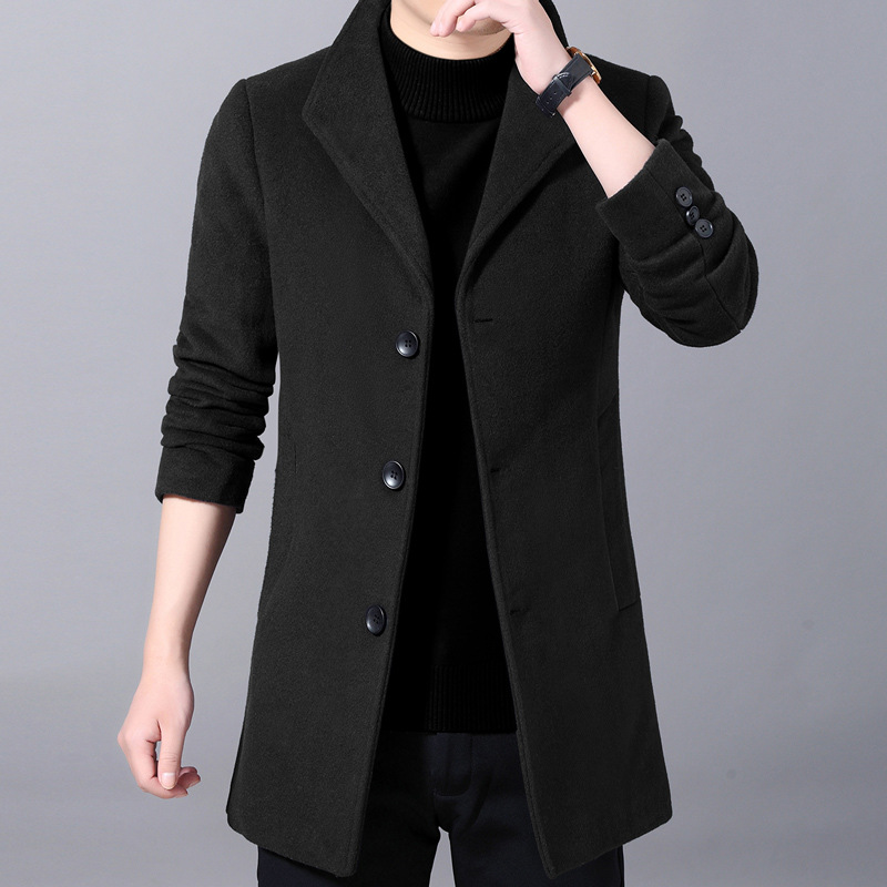 Winter Woolen Coat Men's Mid-length Over-the-knee Suit Collar Single-breasted Woolen Windbreaker Jacket Thickenedy Men's Clothing