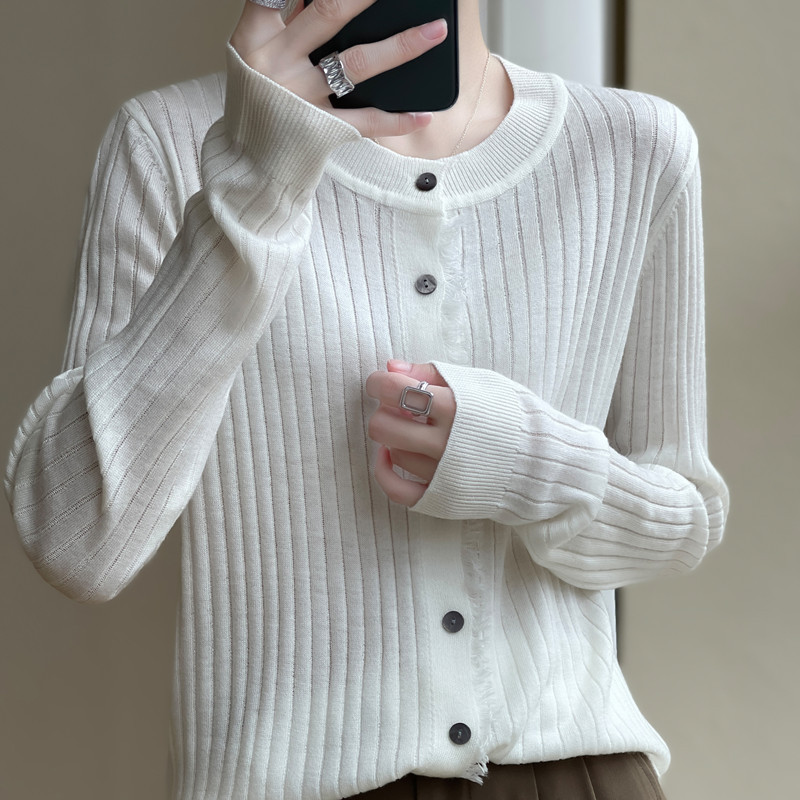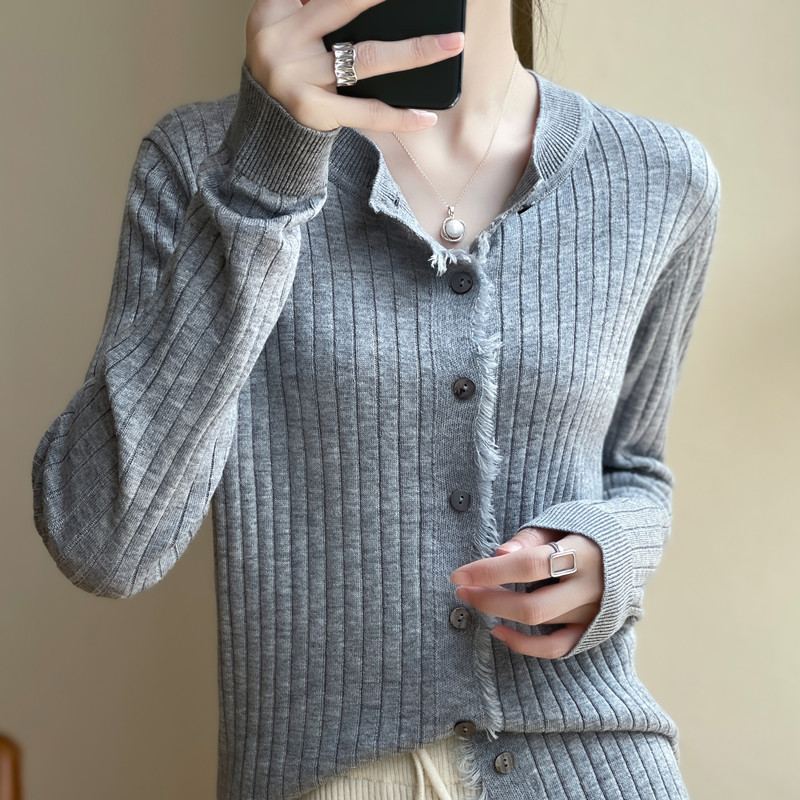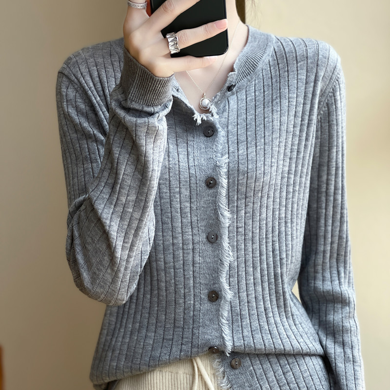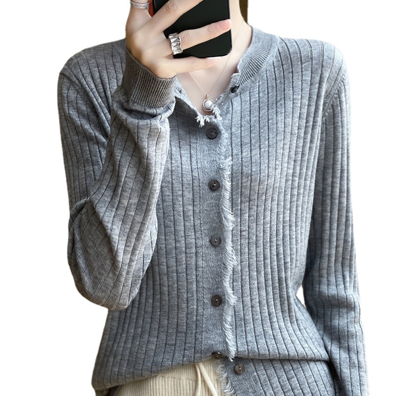 Autumn Tassel Round Neck Knitted Cardigan Slim Slim Long-sleeved Sweater Women's Wool Knitted Jacket