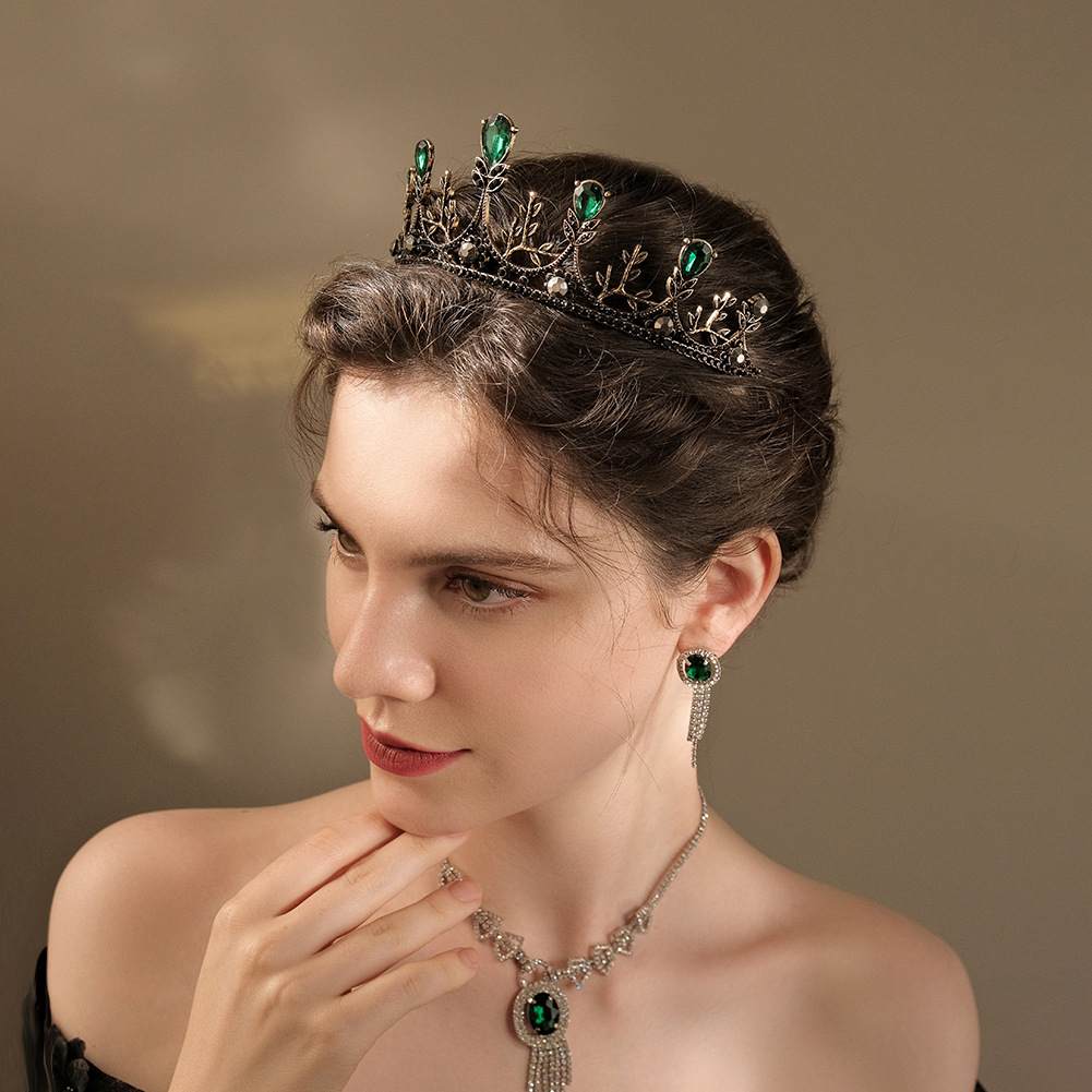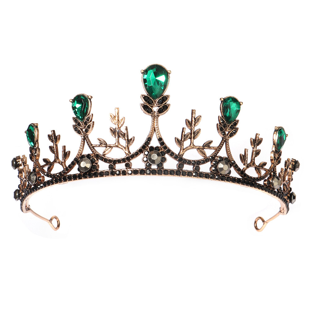 European And American Wedding Luxury Headdress Halloween Green Rhinestone Bridal Crown Wedding Dress Photography Hair Accessories Bridal Crown