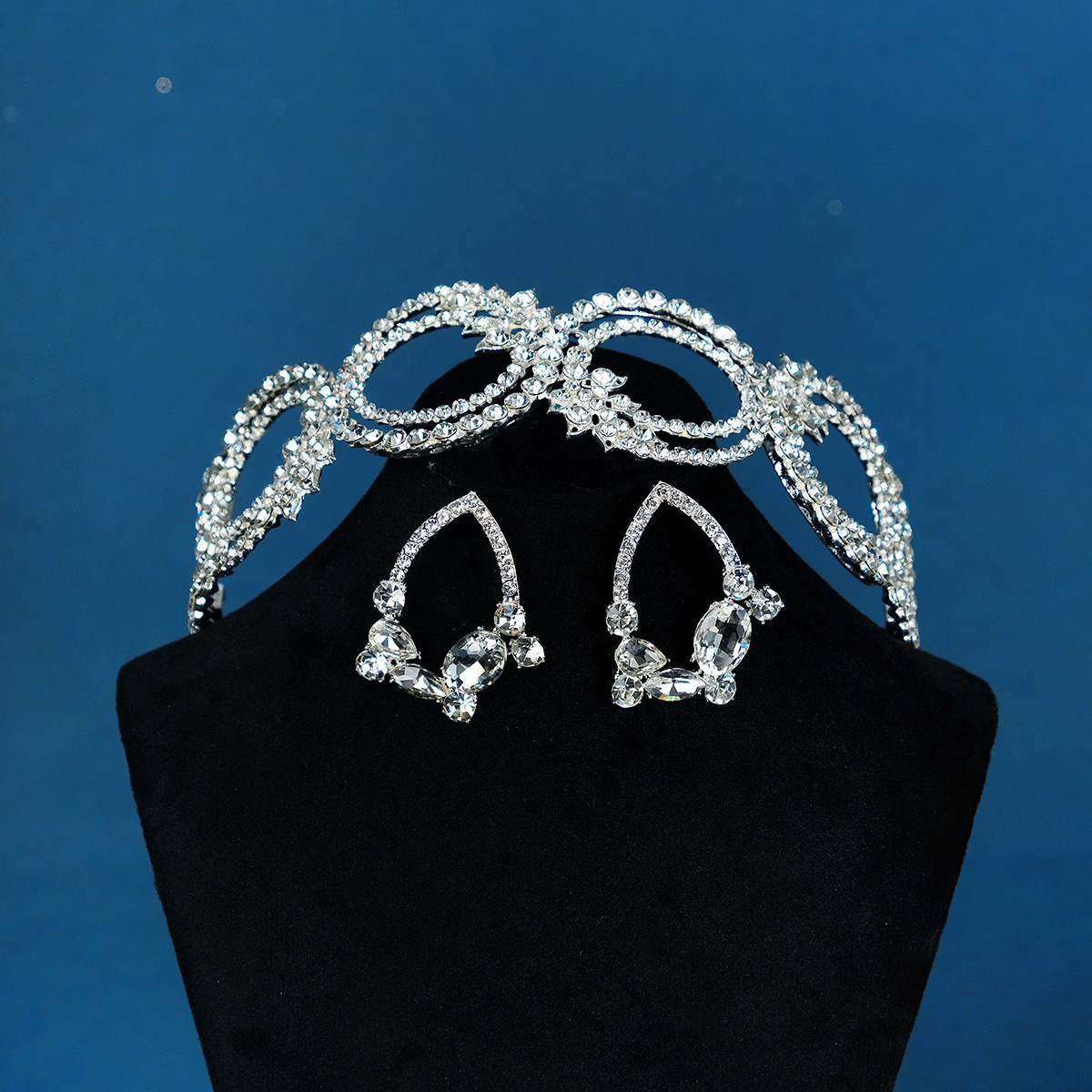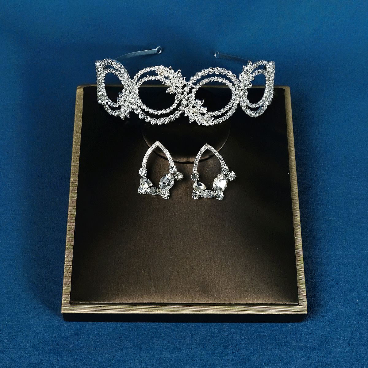 Korean Version Of The Bride Earrings And Headband Set Hollow Alloy Diamond Jewelry Earrings And Headband High-end Wedding Two-piece Set