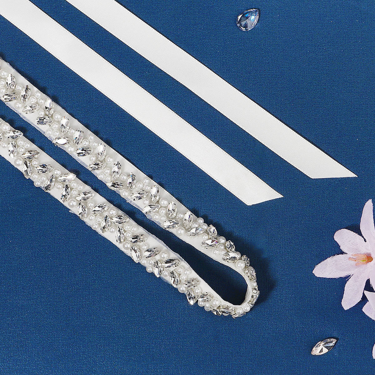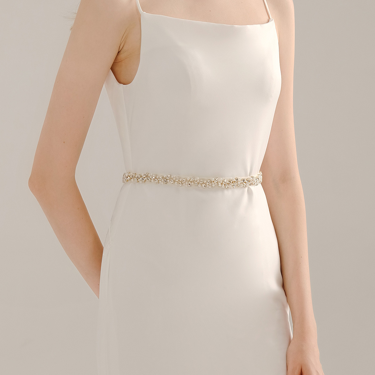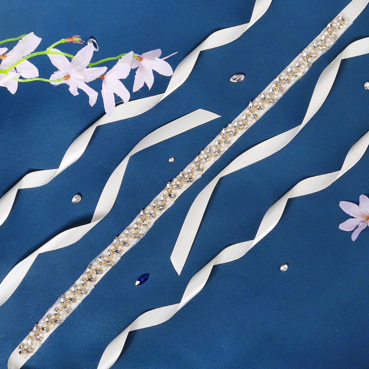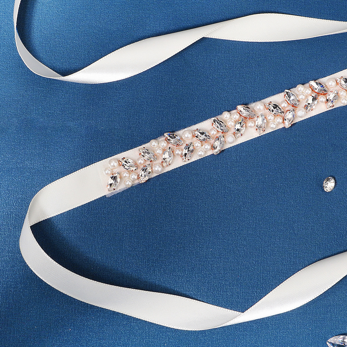 European And American Bridal Jewelry Belt Female Decoration High-grade Golden Horse Eye Rhinestone Waist Seal Thin Hand-sewn Pearl Belt
