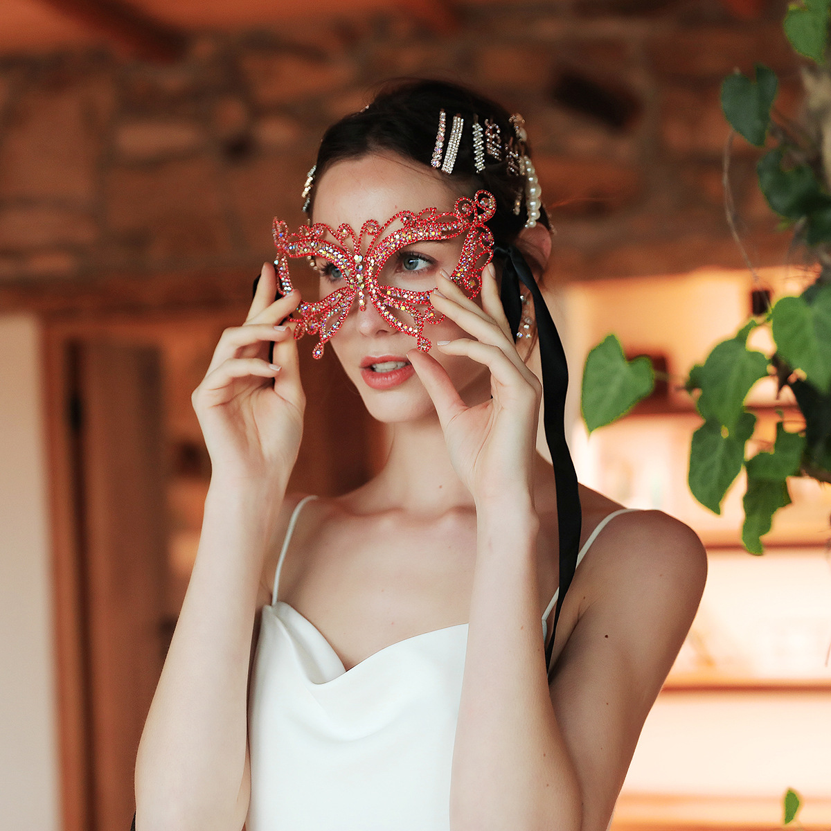 European And American Prom Party Accessories Diamond Mask Halloween Atmosphere Accessories Luxury Rhinestone Bridal Mask