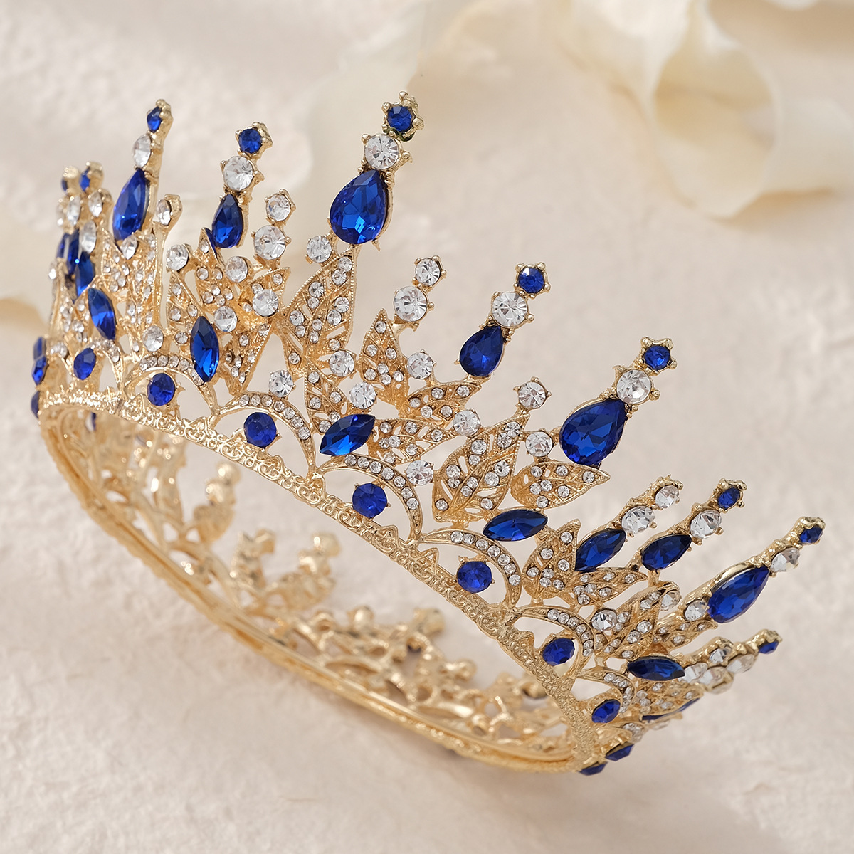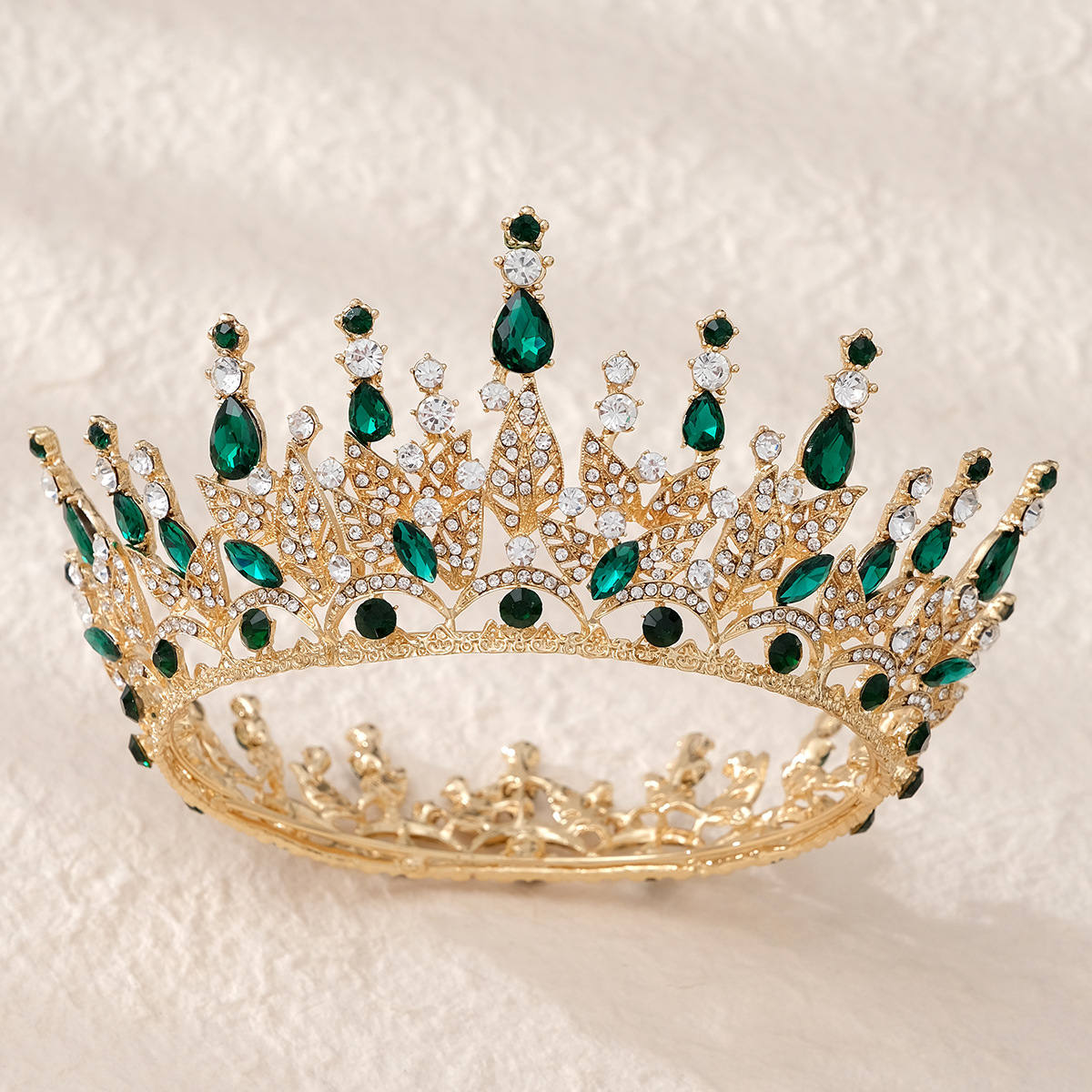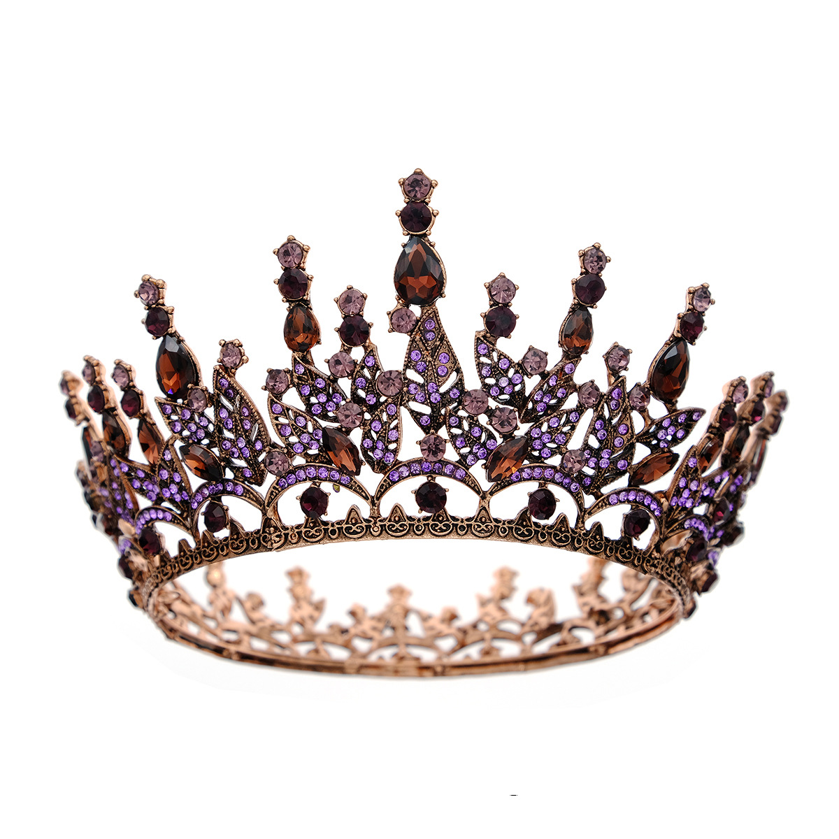 European And American Retro Wedding Jewelry Rhinestone Round Crown Wedding Dress Princess Crown Hair Accessories Alloy Full Round Bride Big Crown