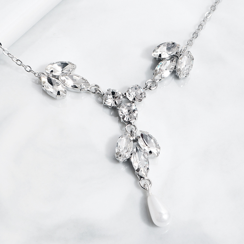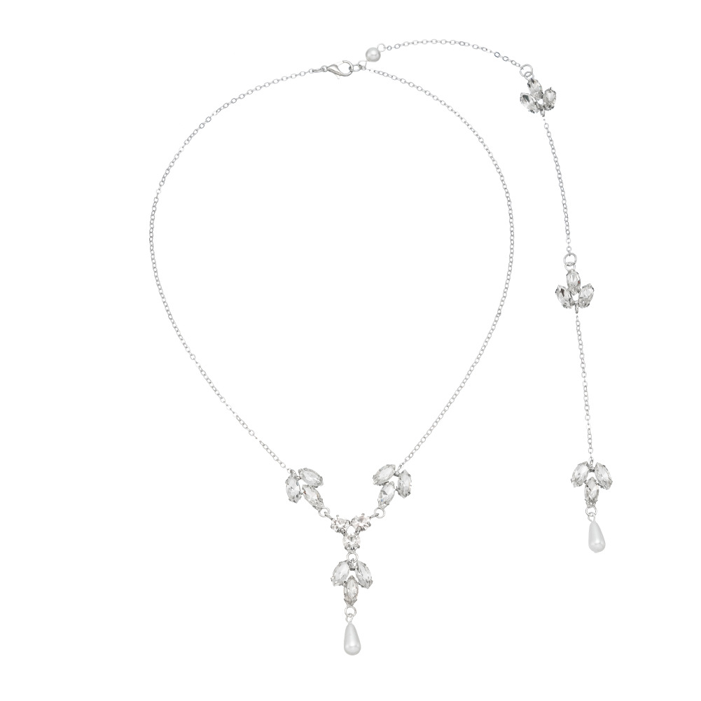 European And Americany Personality Rhinestone Pearl Necklace Female Creative Body Jewelry Long Chain With Wedding Dress Back Chain