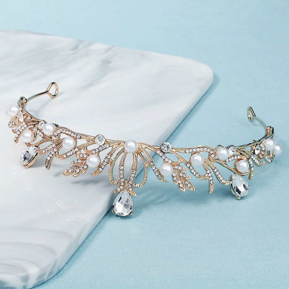 Baroque Crown Tiara Korean Wedding Bridal Party Party Accessories Rhinestone Pearl Small Crown