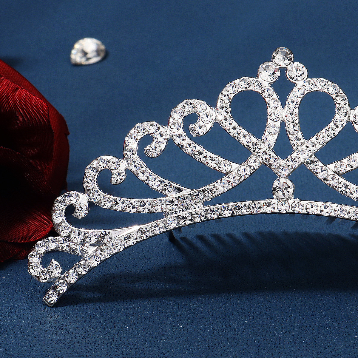 European And American Bridal Crown Hair Accessories Comb Princess Birthday Cake Decoration Ornaments Alloy Rhinestone Comb Crown