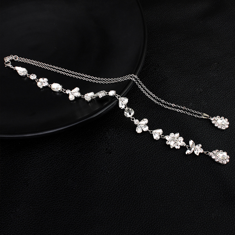 Bridal Jewelry Long Necklace For Women Simple Rhinestone Pendant Body Chain Dress Wedding Dress Back Chain