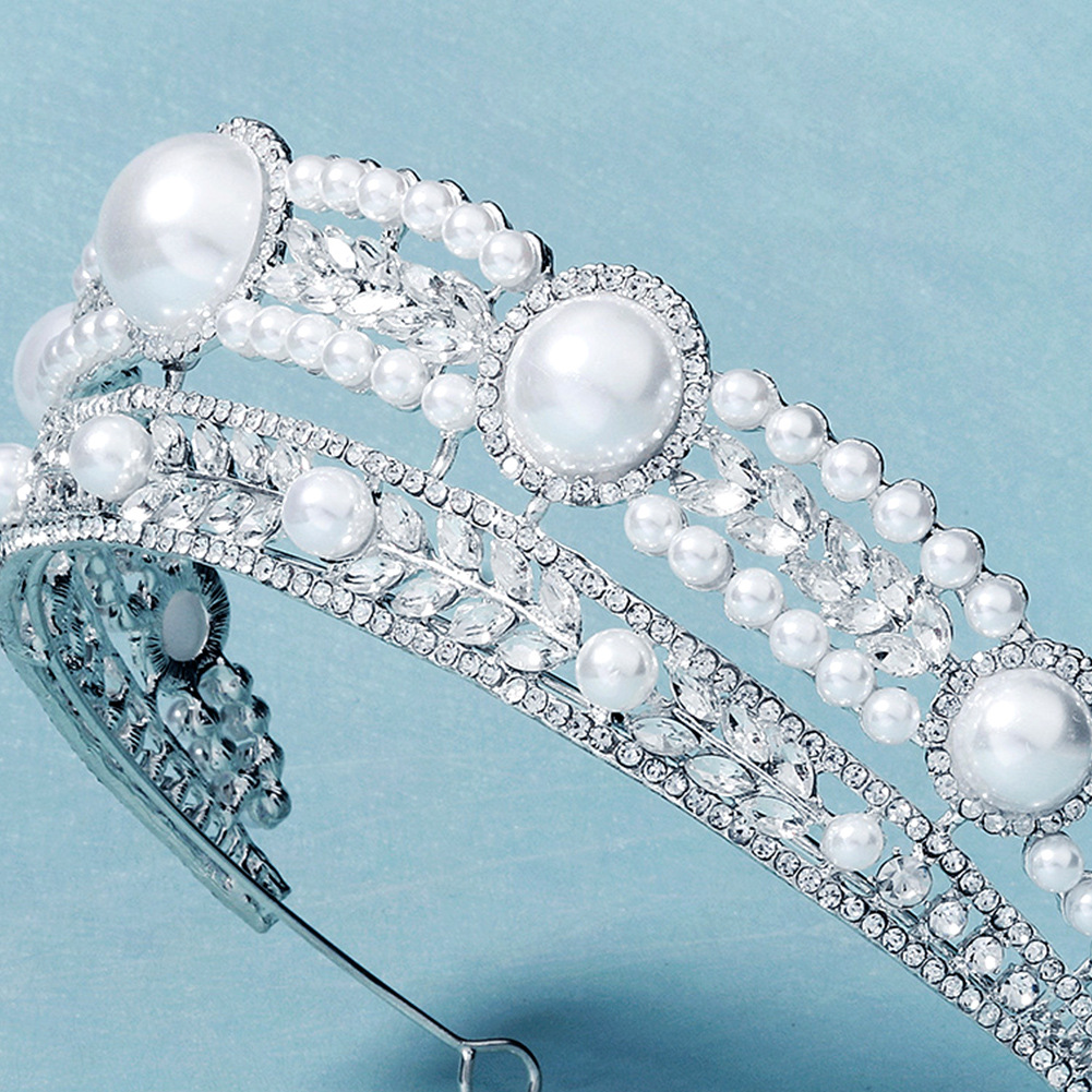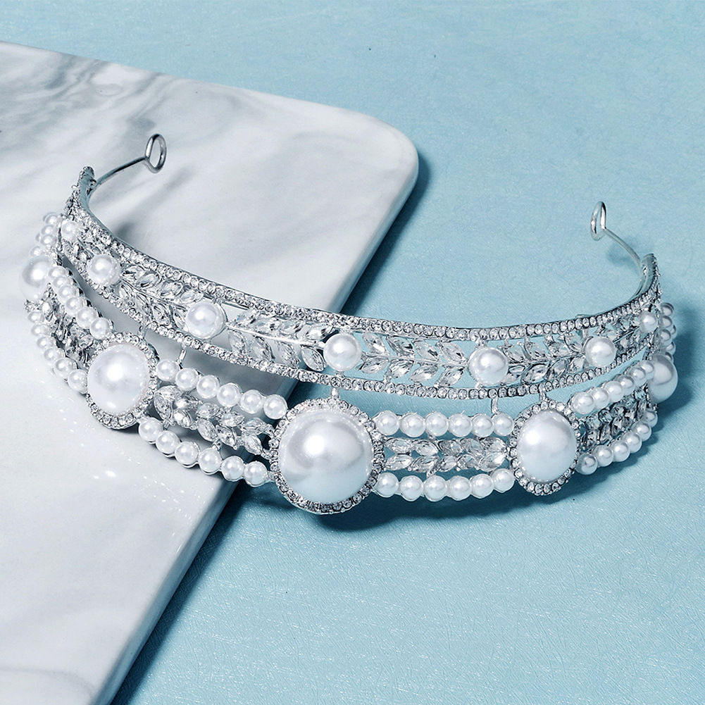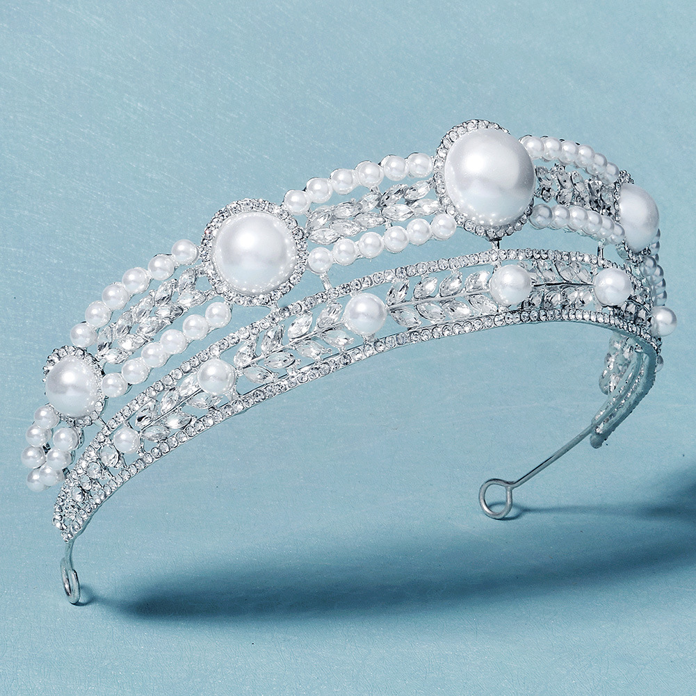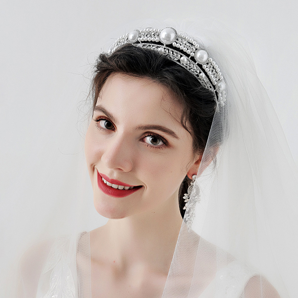 European And American Foreign Trade Hot-selling Bridal Jewelry Retro Bridal Wedding Accessories Crown Alloy Pearl Crown