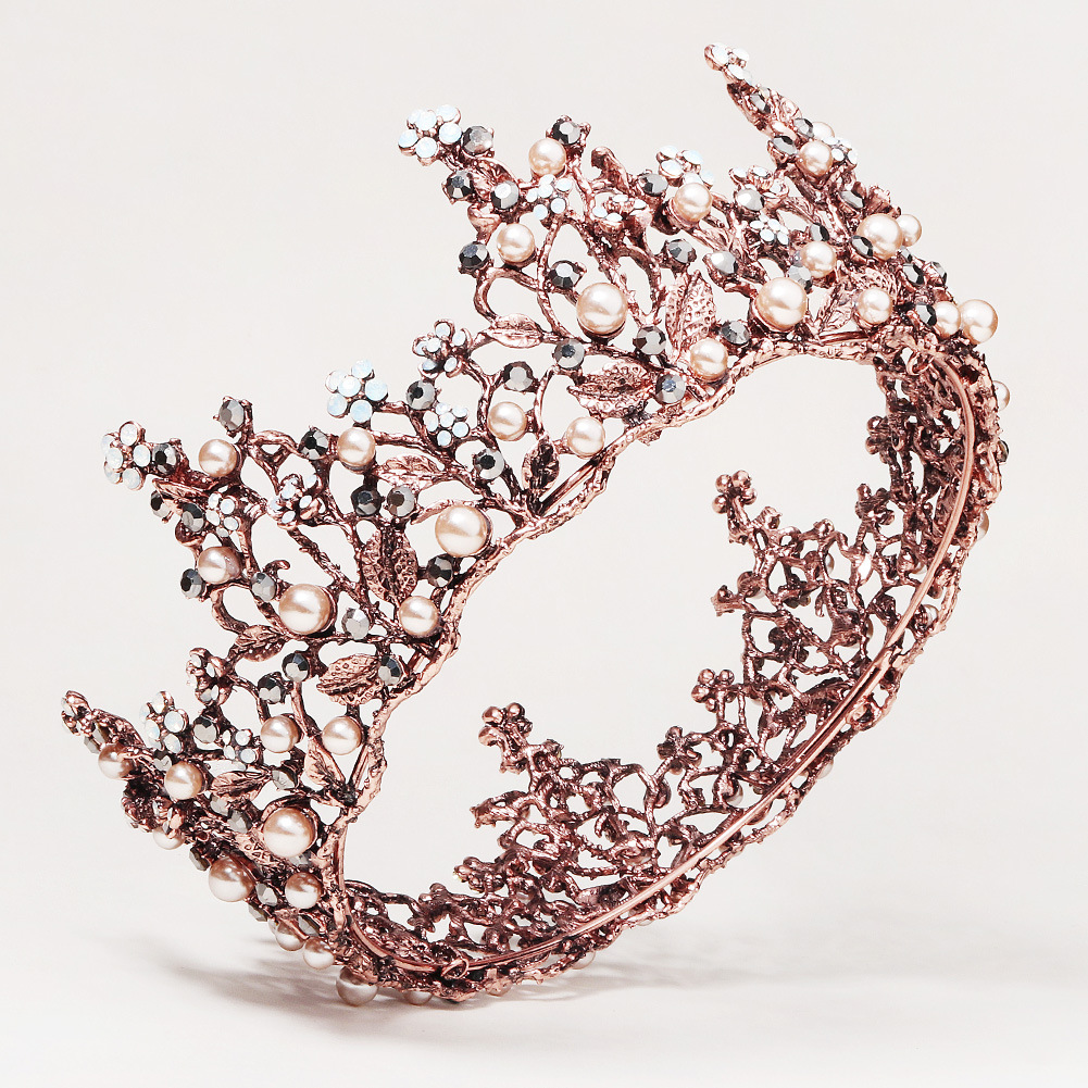 European And American Retro Bridal Hair Accessories Pearl Crown Princess Queen Birthday Wedding Headdress Alloy Diamond Full Round Crown