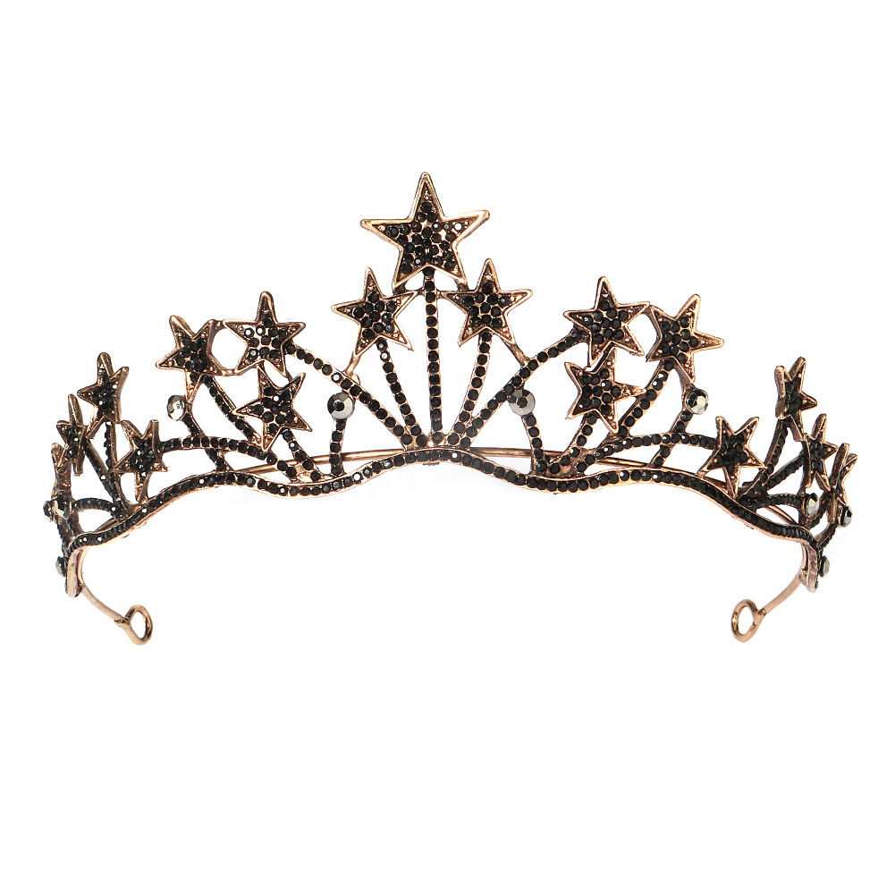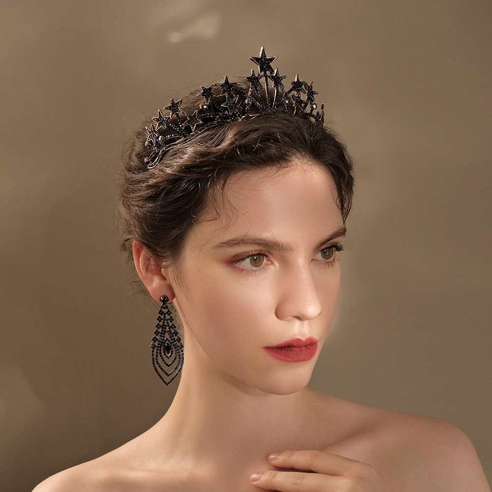 European And American Wedding Headdress Bride Crown Alloy Retro Hair Accessories Birthday Party Crown Temperament Black Star Crown