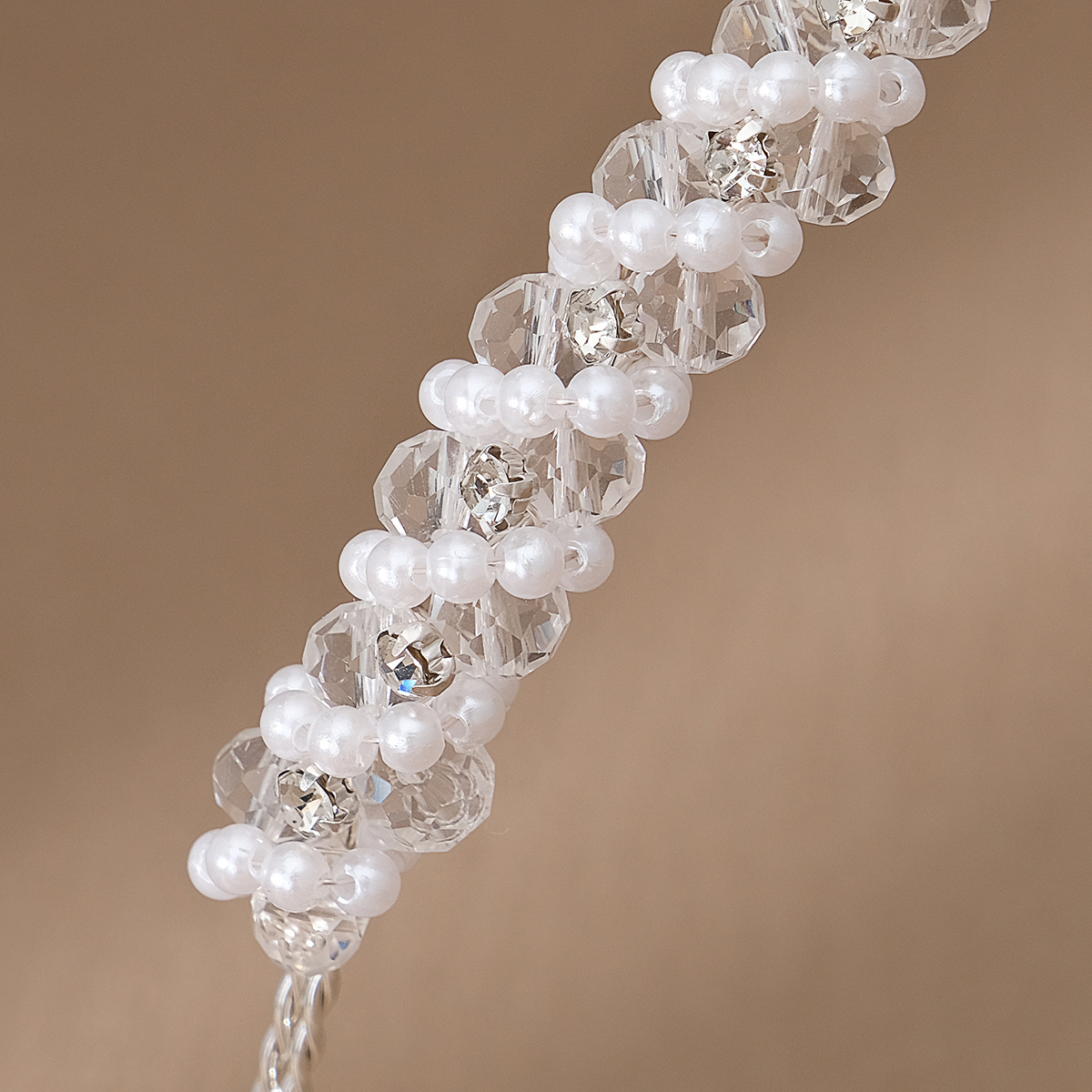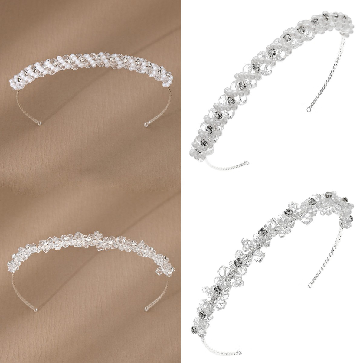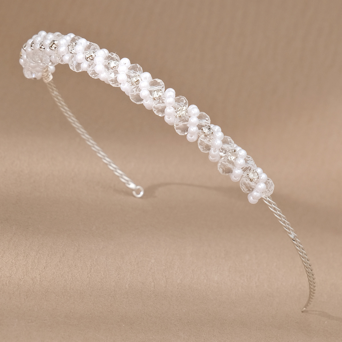 Korean Crystal Beaded Hair Hoop Hair Accessories Hand-woven Headband Super Flash Crystal Pearl Wrapped Thin Hair Hoop For Women