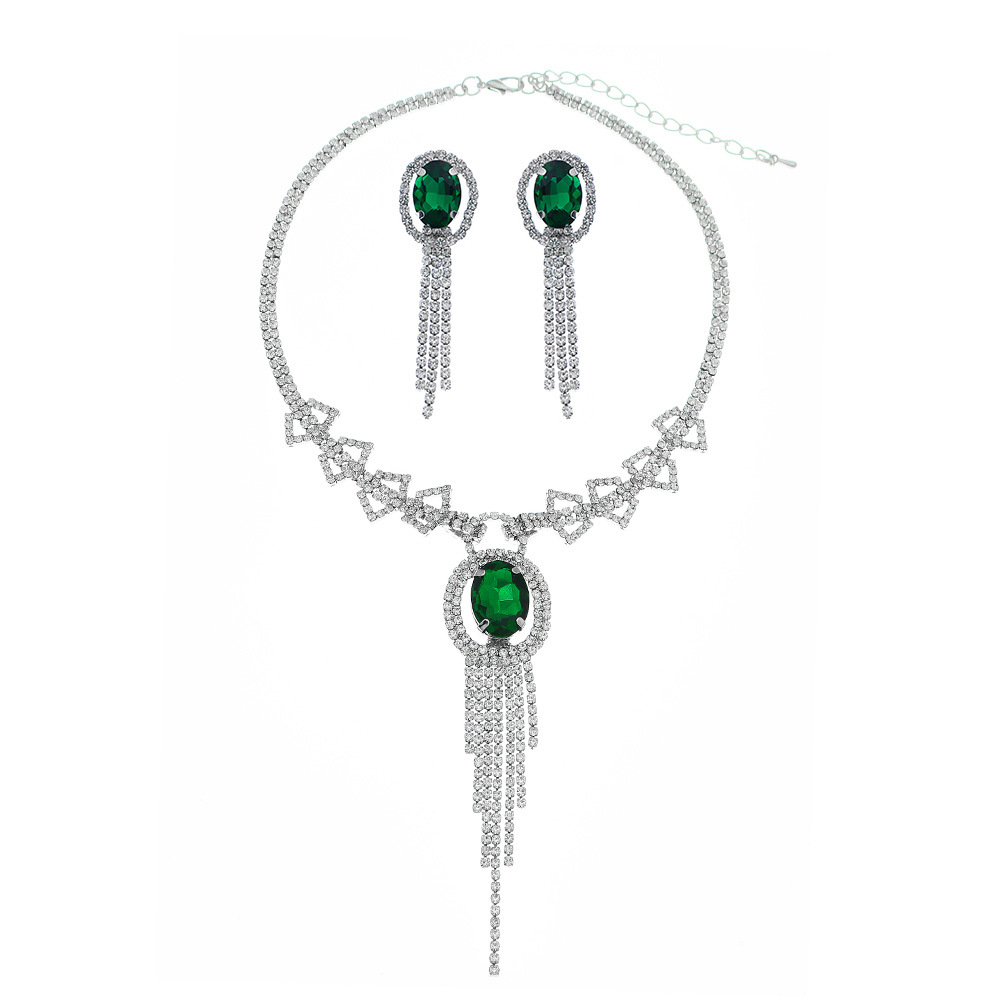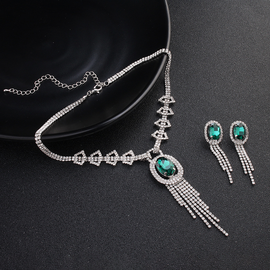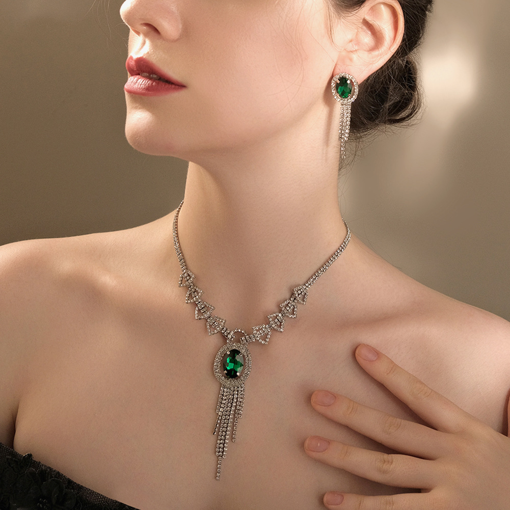 Retro Palace Style Double Row Diamond Necklace For Women With Diamonds Luxury With Tassel Pendant Necklace Earrings Set Clavicle Chain