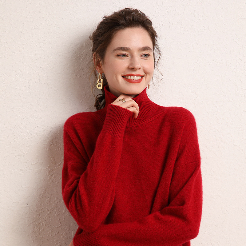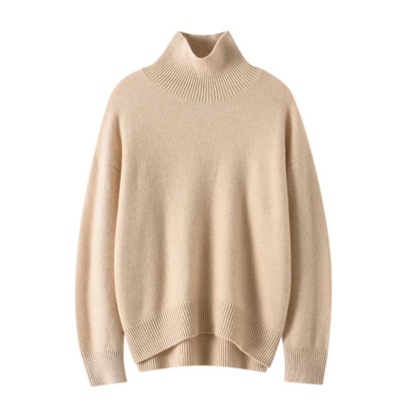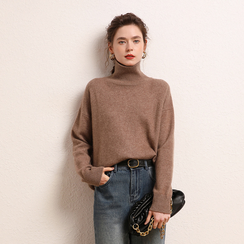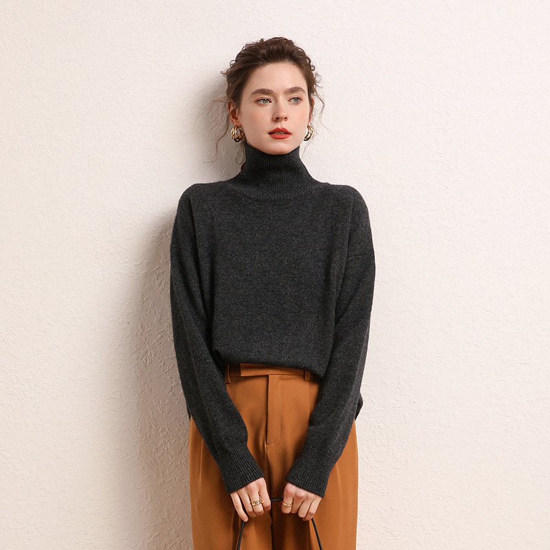 Celebrity Style High Collar Loose Lazy Style Cashmere Sweater Women's Korean Version Of Casual Knitted Wool Sweater Bottoming Shirt Women