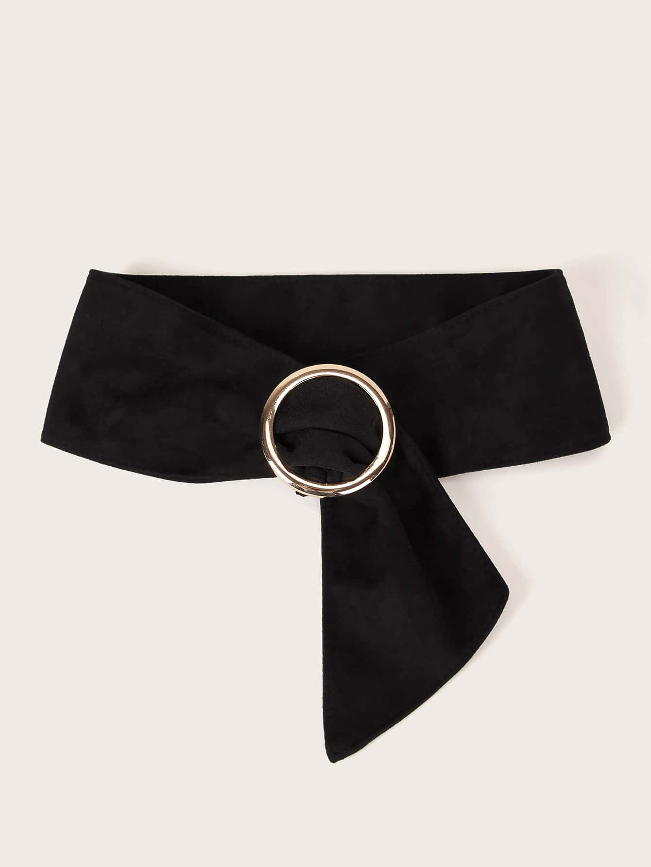 Black Deerskin Suede Waist Belt With Large Round Buckle And Wide Ladies'Fashionable And Versatile Style European And American Middle Eastern Women's Belt