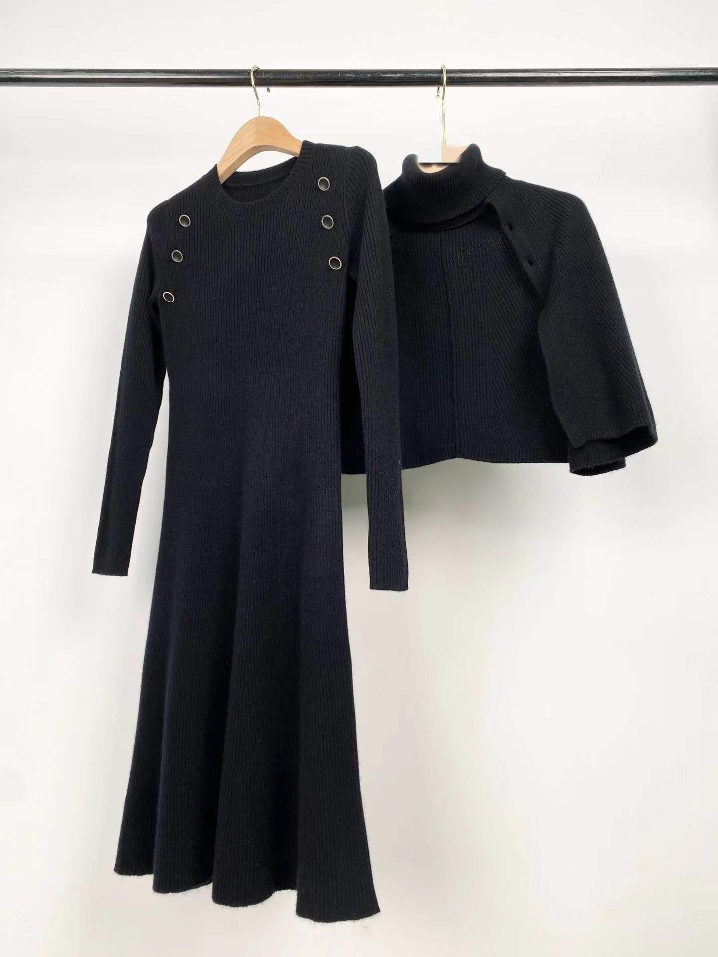 High-end Pure Tail Single 2-piece Set All Cashmere Dress Designer Retro Style Sweater Women Turtleneck Cashmere Sweater Women
