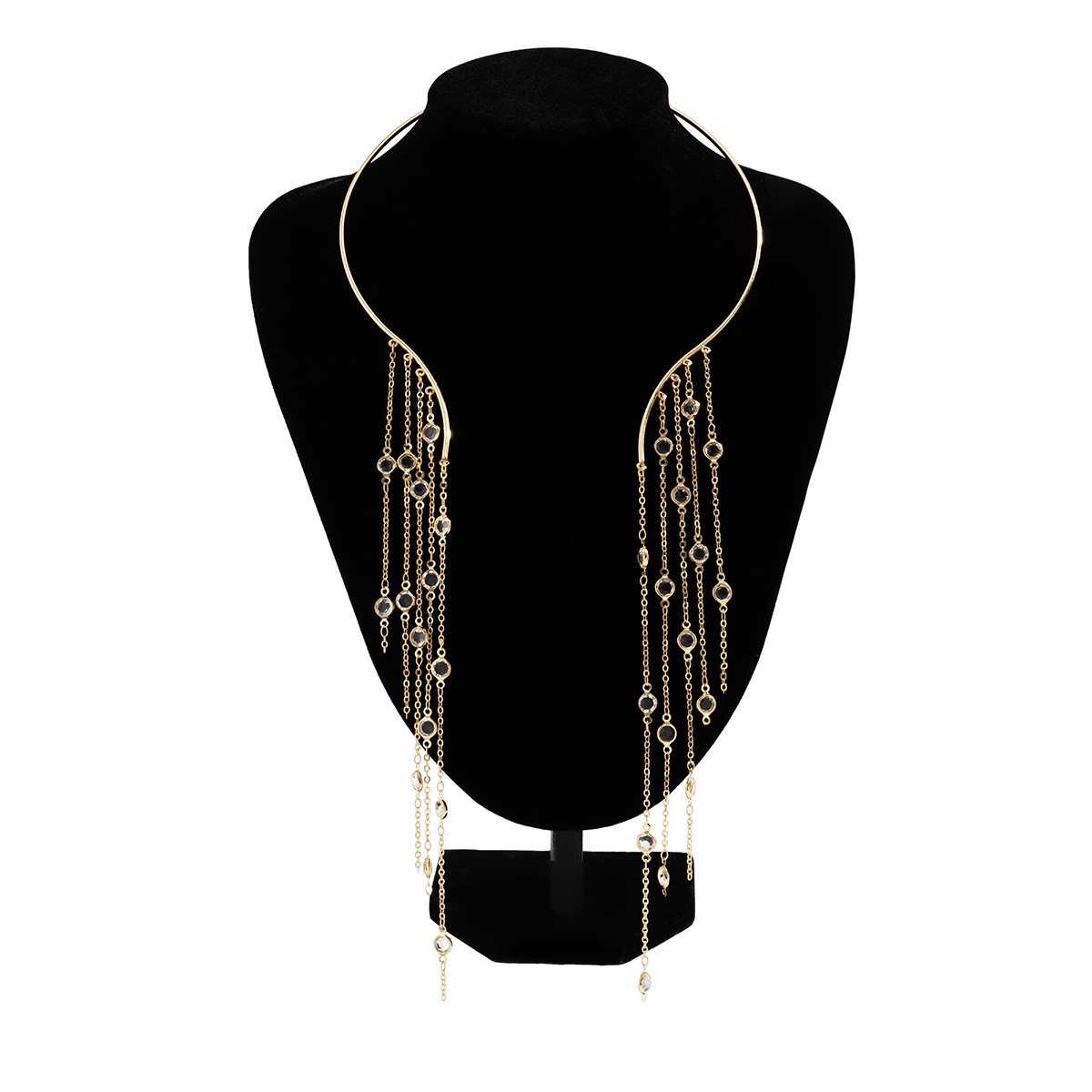 European And American Jewelry Exaggerated Long Tassel Open Punk Necklace Imitation Pearl Choker Necklace For Women