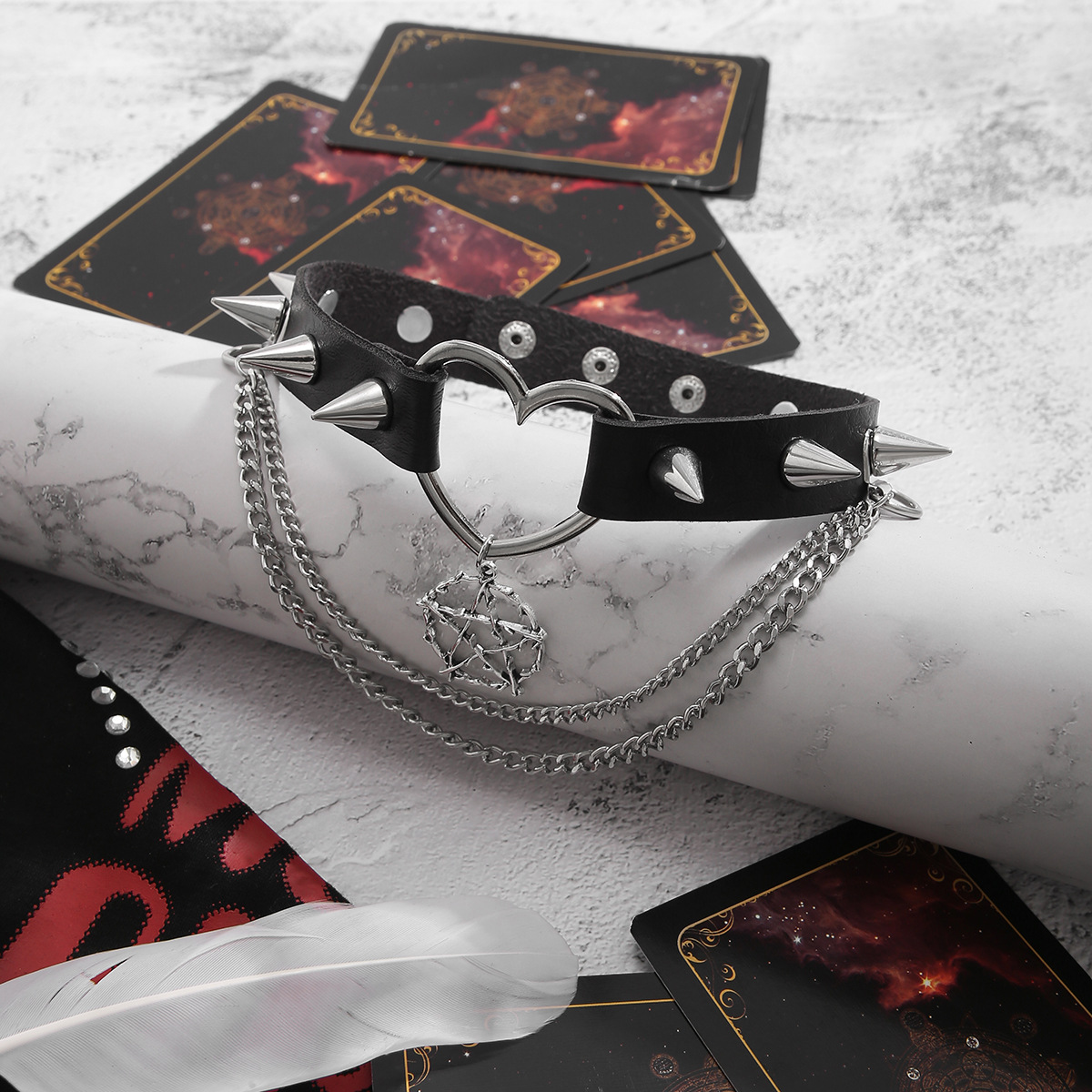 European And American Dark Series Niche Necklace Female Rivet Punk Collar Leather Choker Halloween Jewelry Necklace