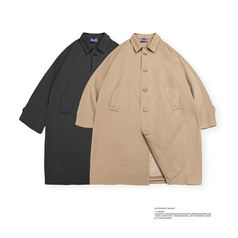 Wuhang Men's Basic Versatile Mid-Length Loose Windbreaker Japanese Retro College Style Jacket Unisex Men HW37
