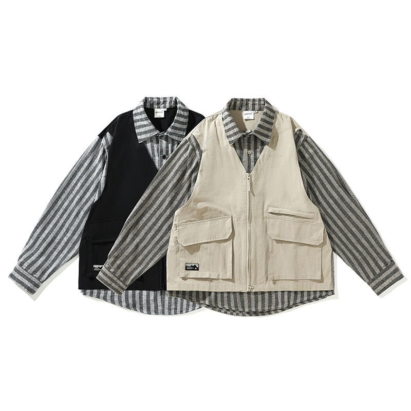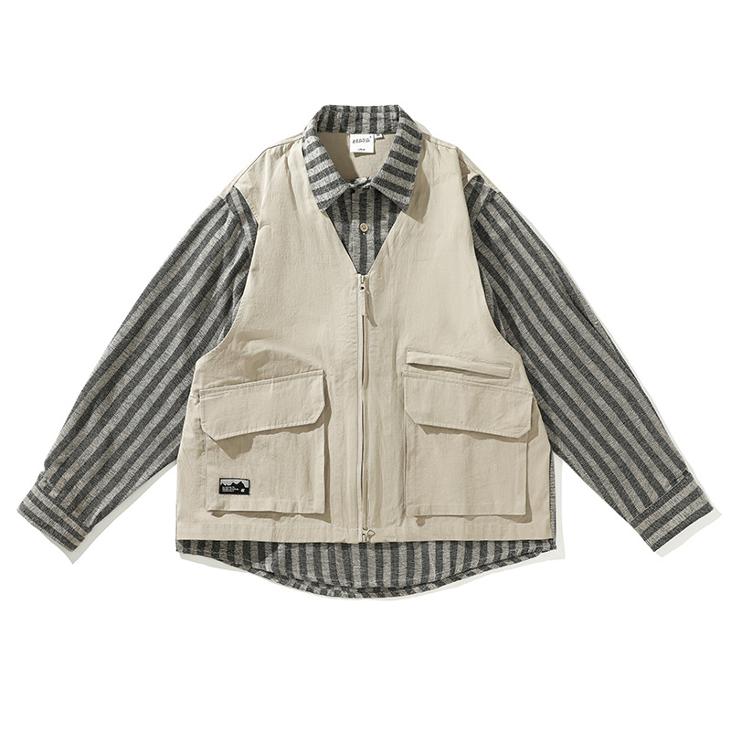Wuhang Autumn Japanese Street Fashion Fake Two-piece Long-sleeved Shirt Loose Shirt Jacket CS363