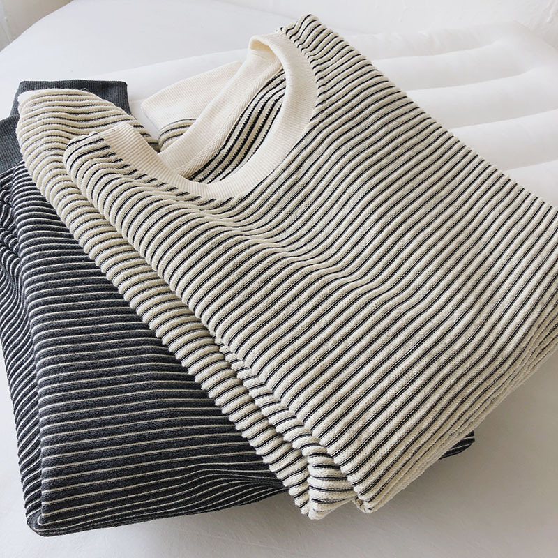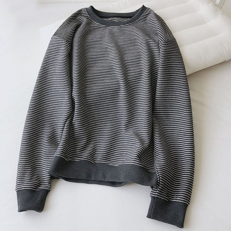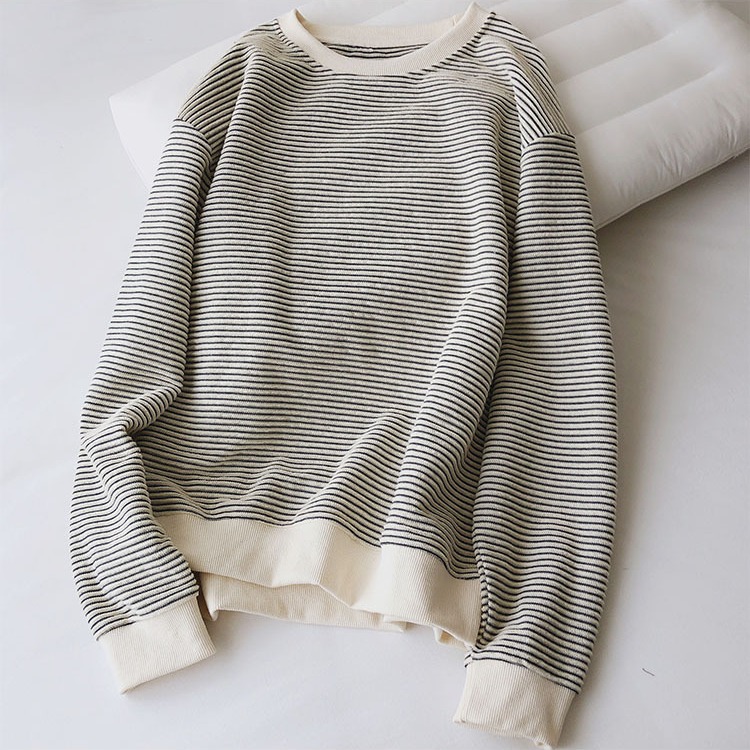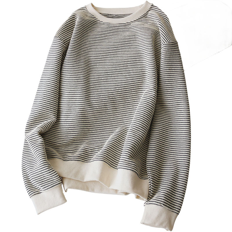 College Age-reducing Texture Striped Pullover Sweatshirt For Women Autumn And Winter Korean Version Oversize Loose Versatile Jacket Top