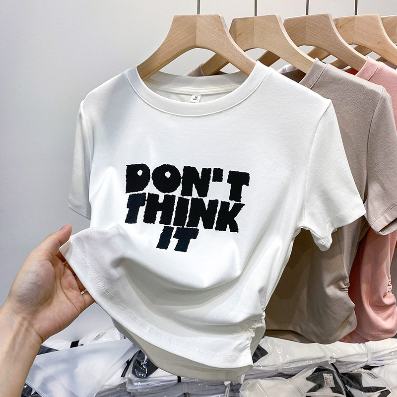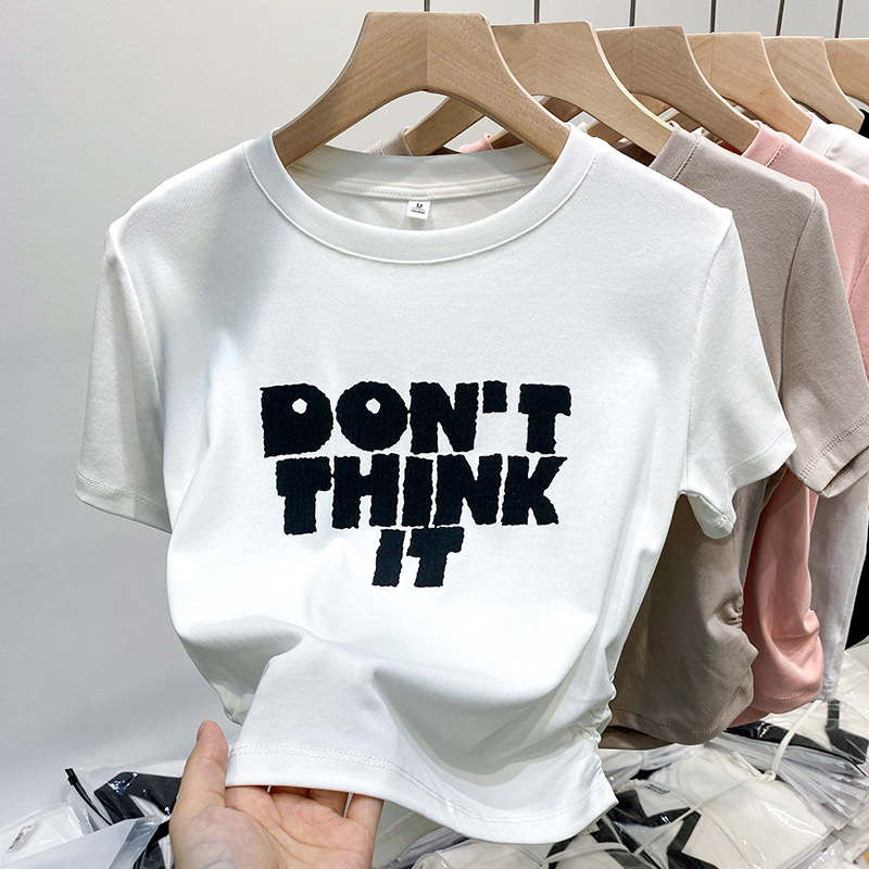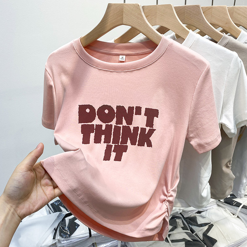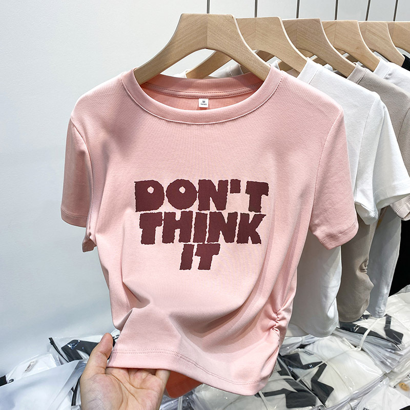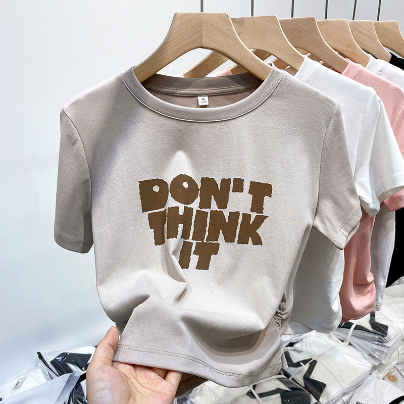 Design Niche Printed T-shirt Women's Short-sleeved Shirt Pure Lust Style Right Shoulder Top Short Slim Fit Waist Clothes