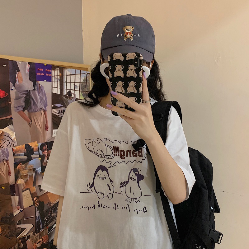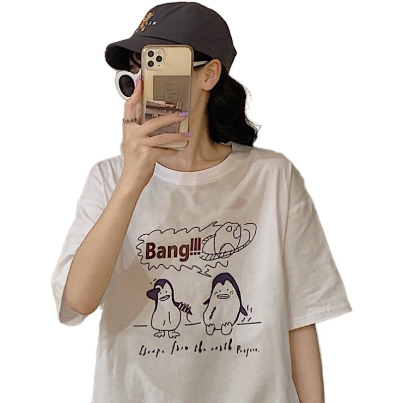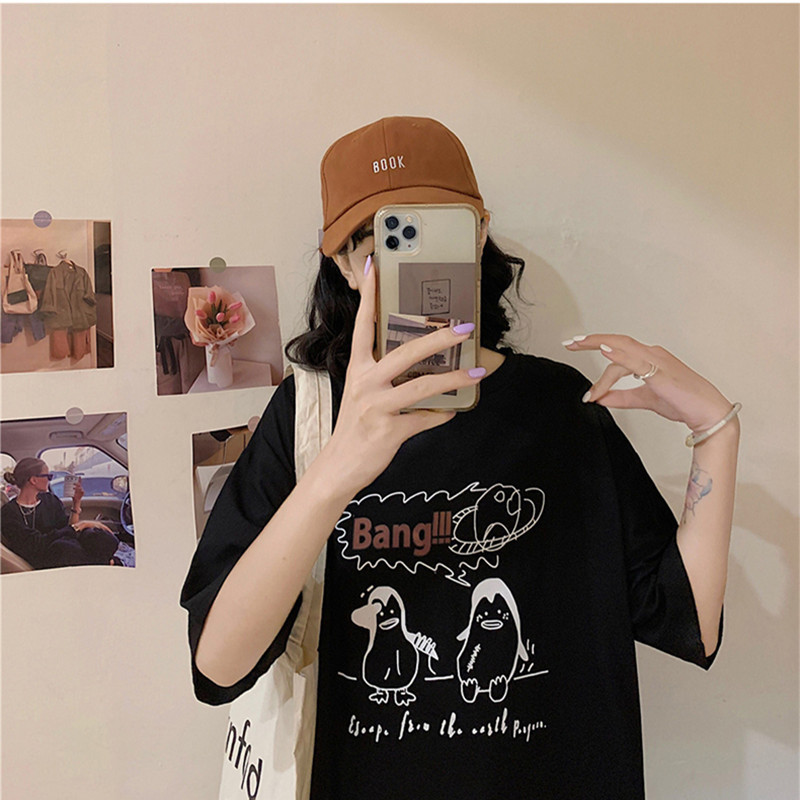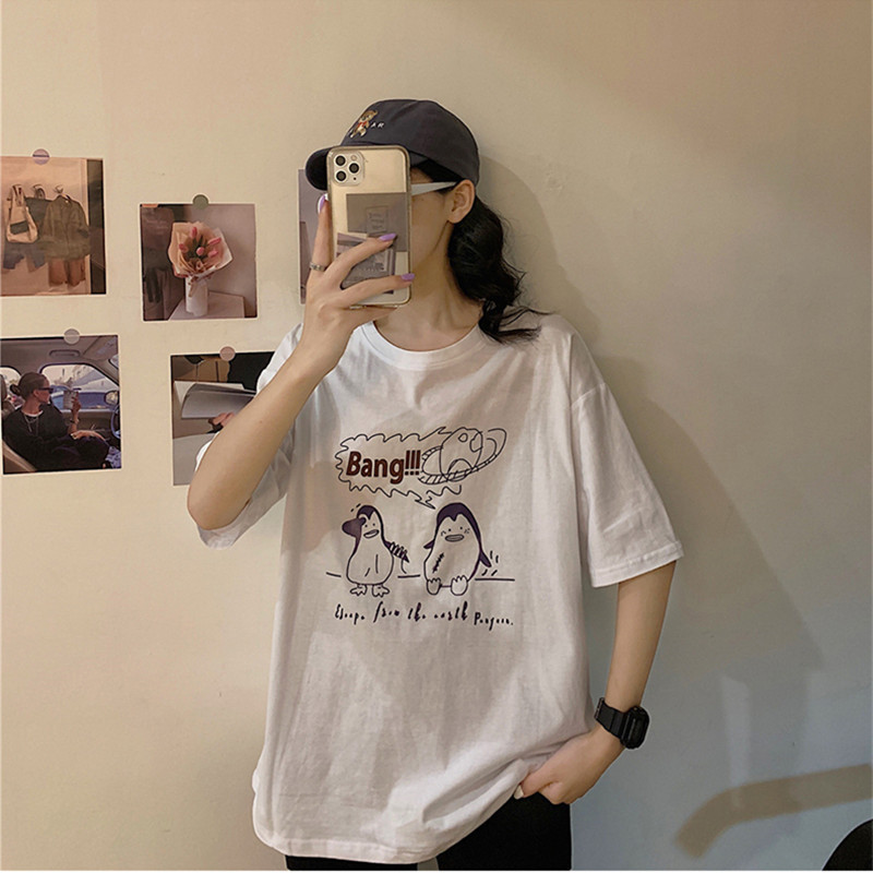 Casual Women's T-shirt Short Sleeve Summer Round Neck Loose Student T-shirt Top Female Korean Version