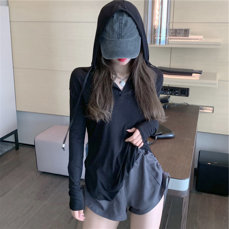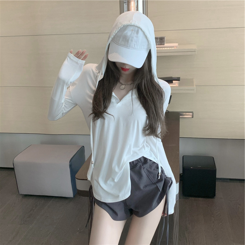 Summer Pure Desire Hot Girl Style Irregular Slit Long-sleeved T-shirt Female Sunscreen Blouse Hooded Top