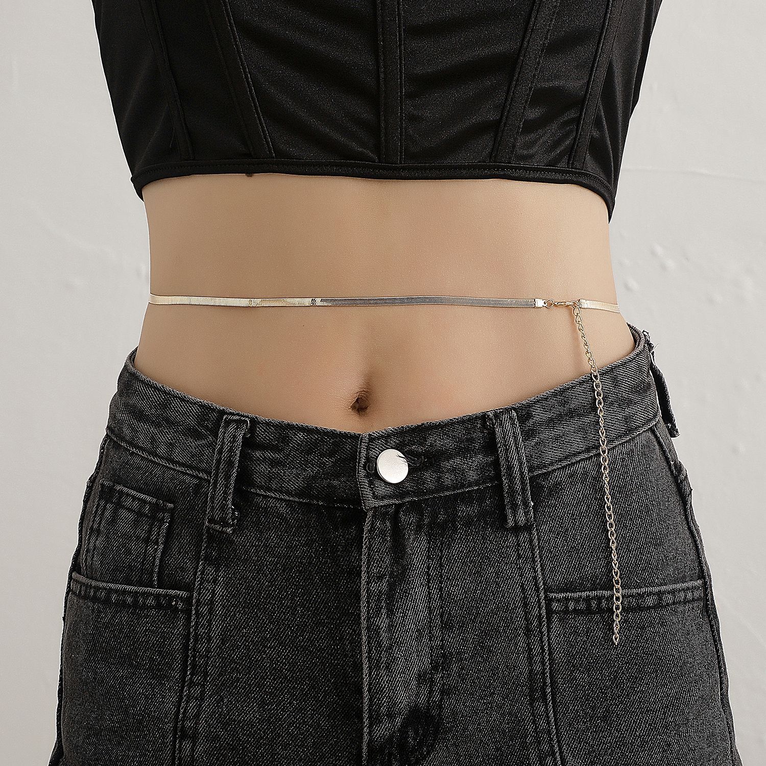 European And American Jewelry Simple Solid Color Snake Bone Chain Body Chain Female Punk Retro Sexy Metal Waist Chain