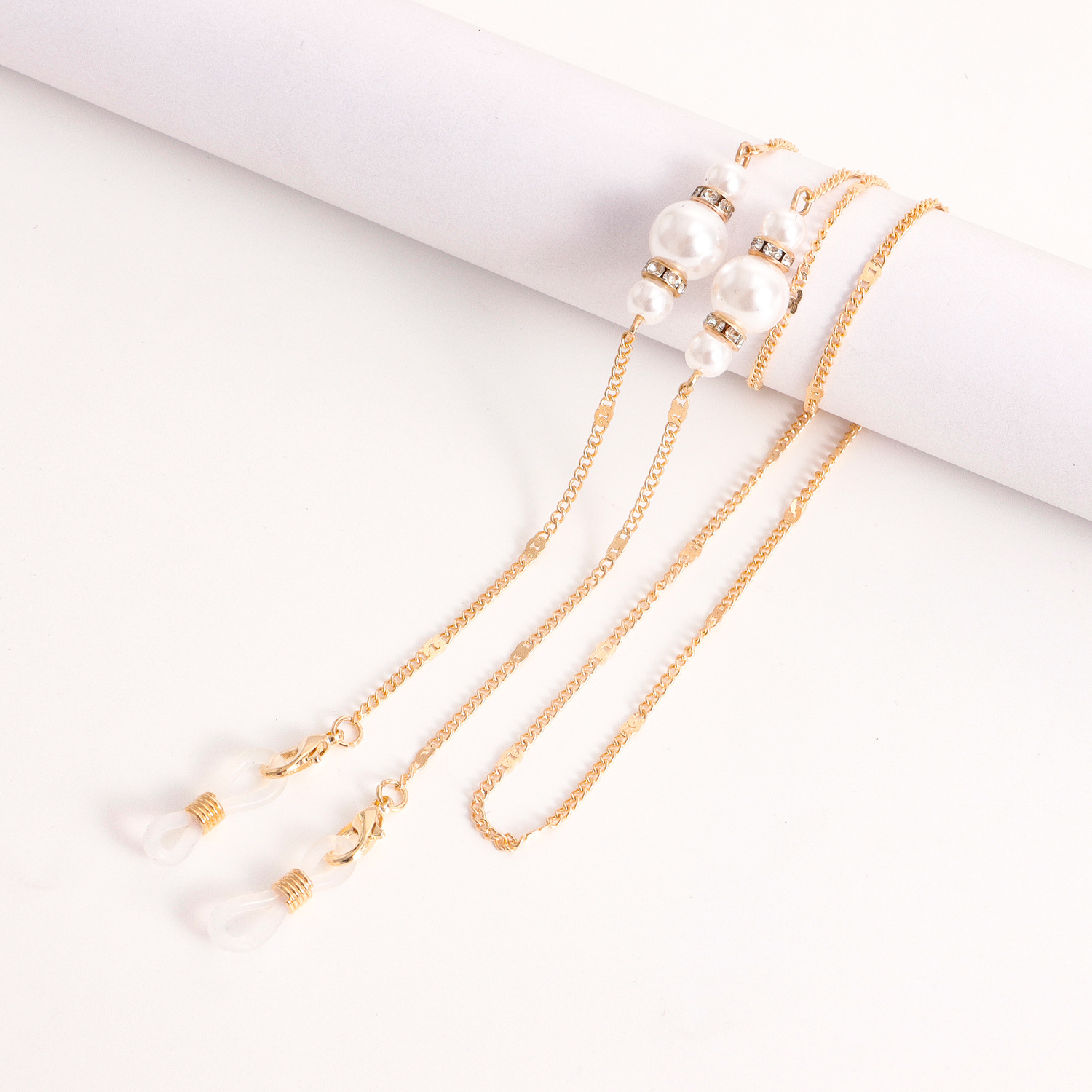 European And American Mask Hanging Chain Glasses Chain Imitation Pearl Mask Chain Colored Zircon Metal Glasses Chain Ready Stock