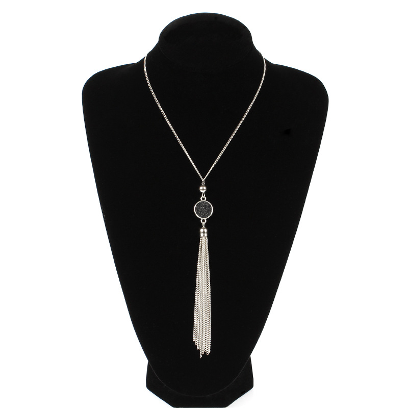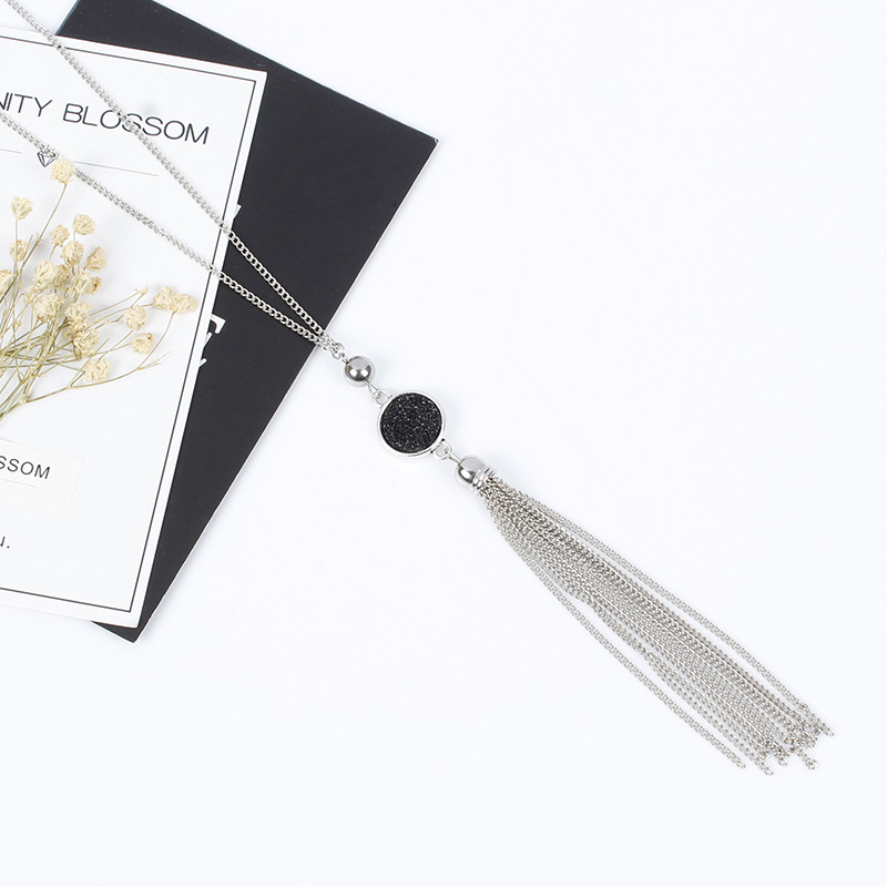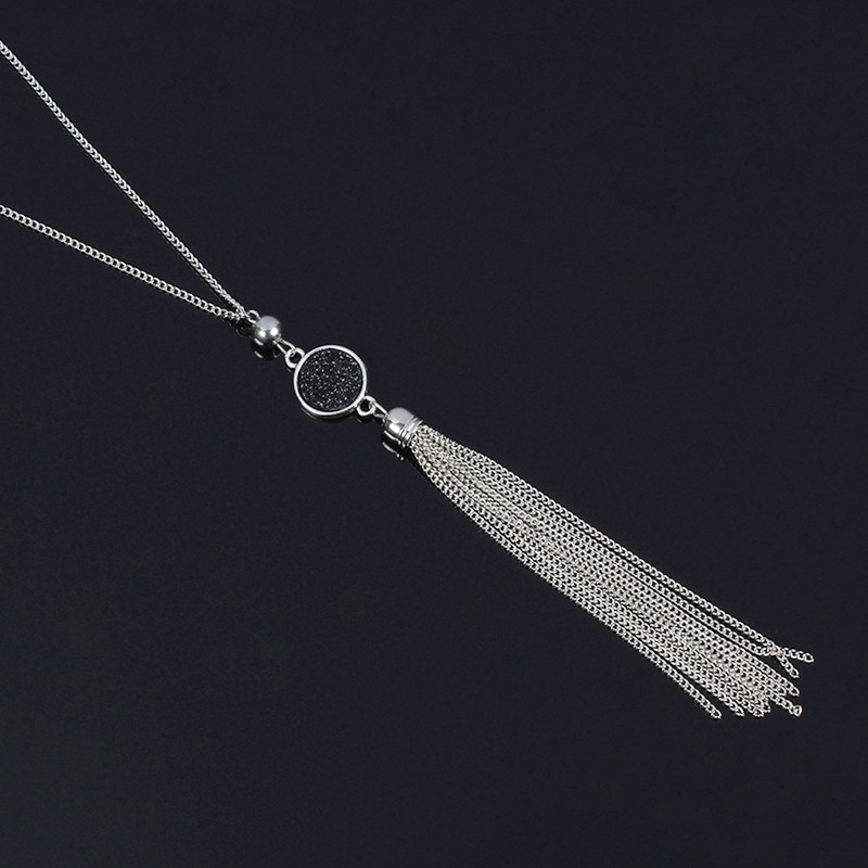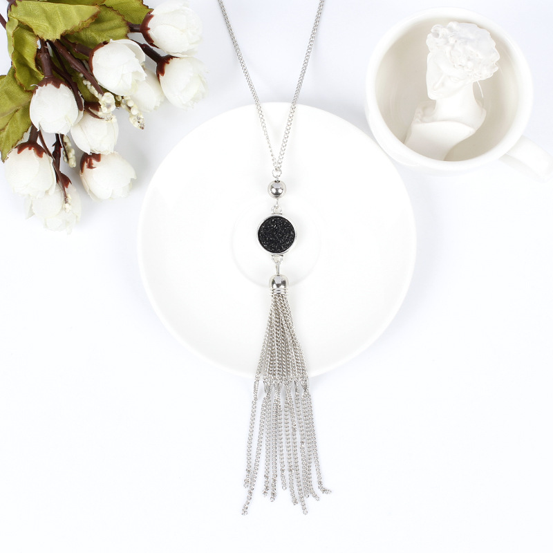 Accessories European And American Fashion Alloy Tassel Long Pendant Resin Round Necklace For Women