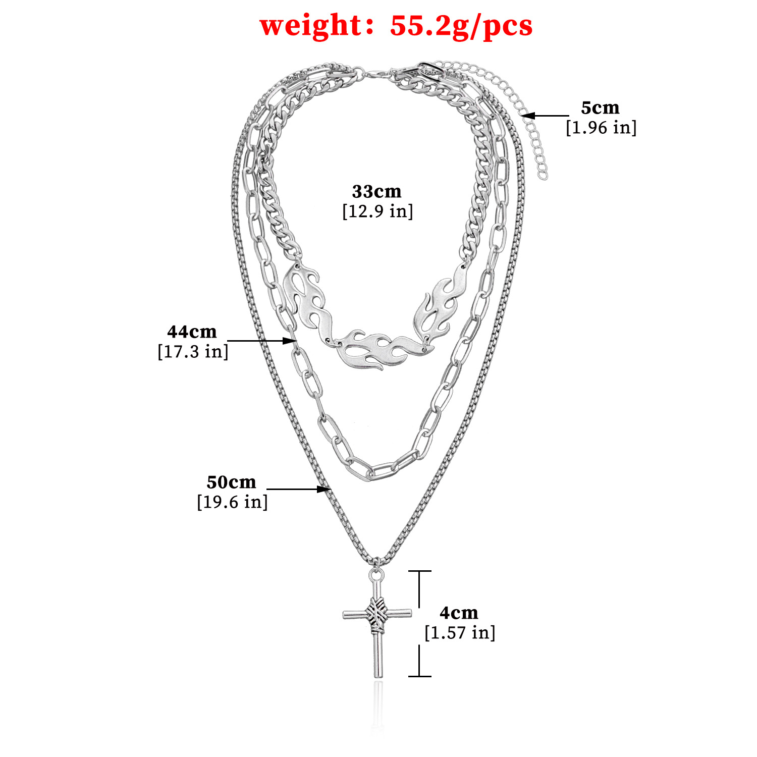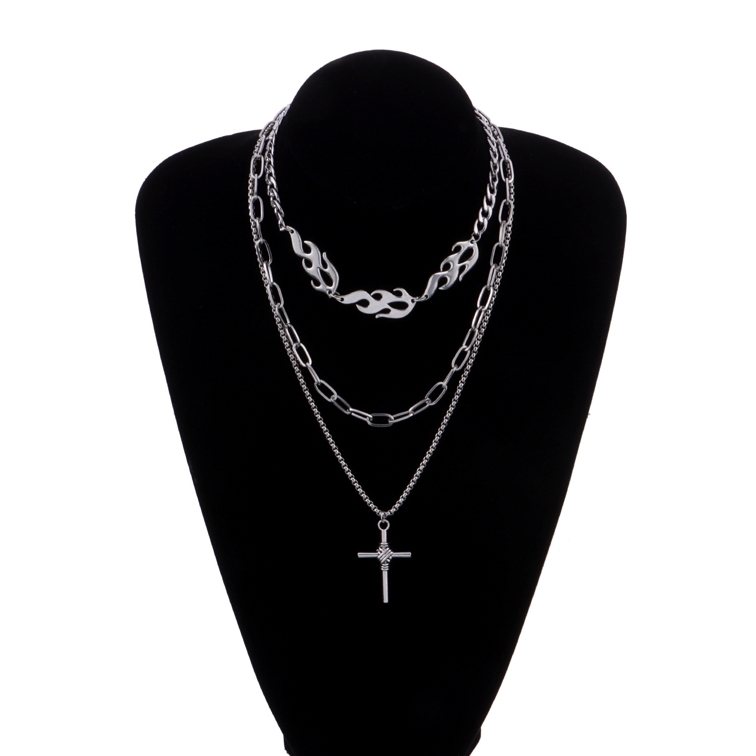 European And American Jewelry Hip-hop Multi-layer Flame Necklace Cross Pendant Female Fashion Necklace