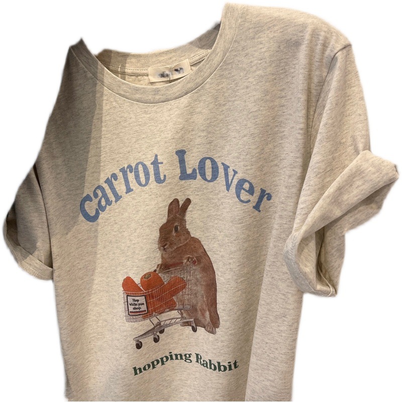 Pure Cotton Short-sleeved T-shirt Women's Summer Casual Style Women's Round Neck Loose Half-sleeved T-shirt Top