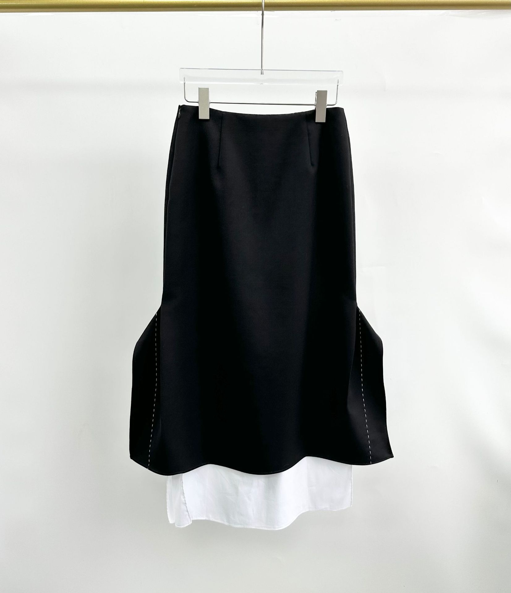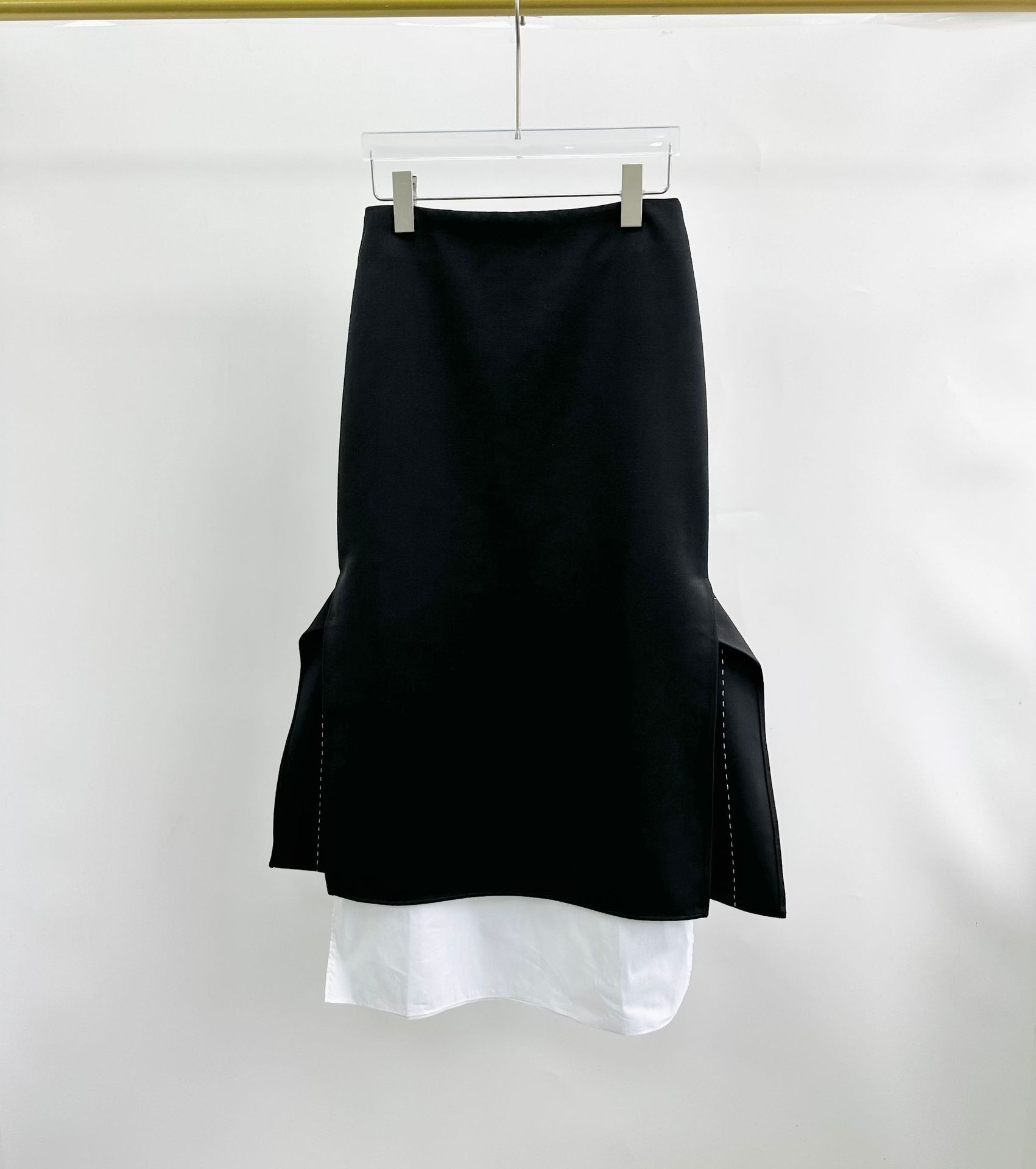 Fashionable Minimalist Style R O W Long Skirt For Autumn Women High Waist Slit Black And White Contrast Wool Skirt