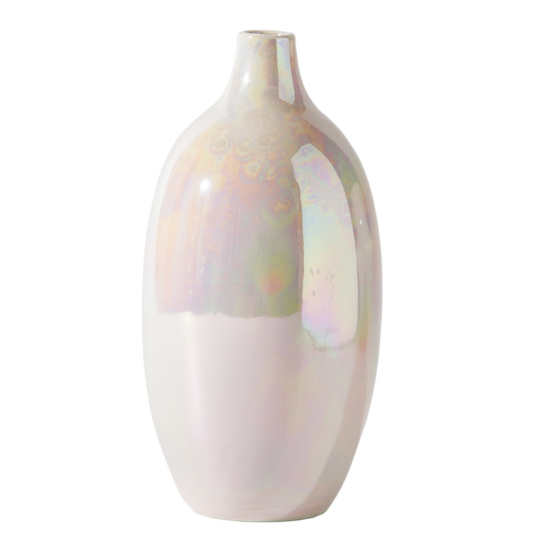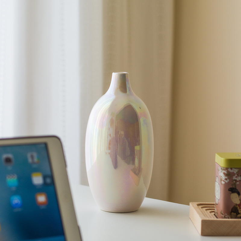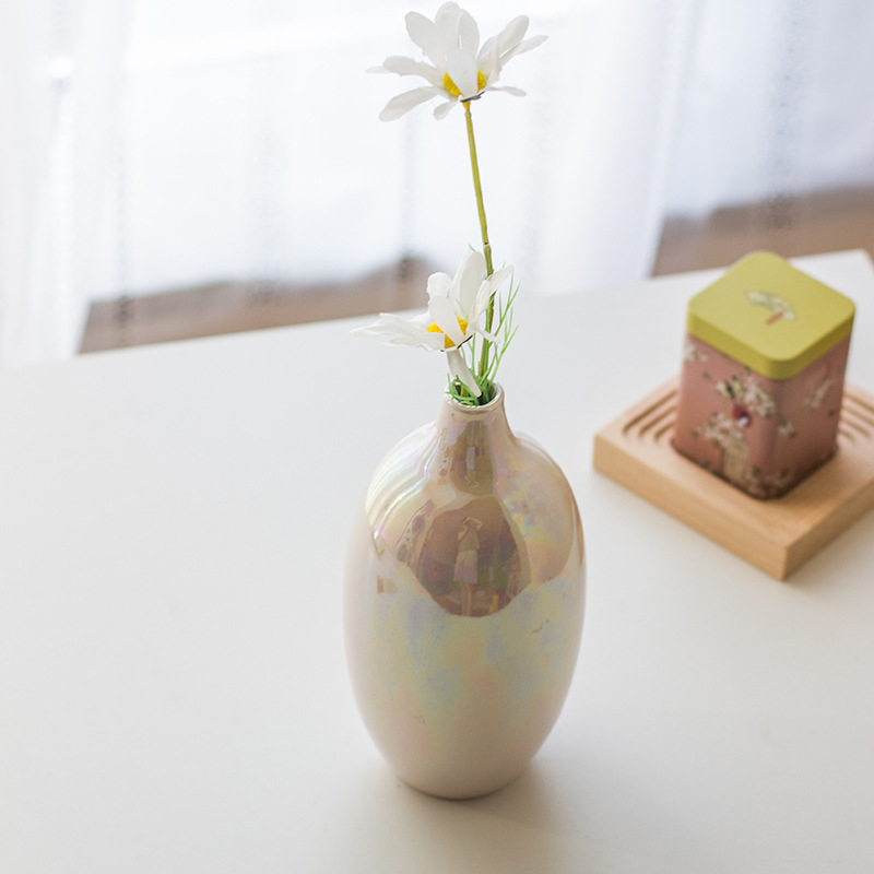 Lemeng Style Nordic Ceramic Vase Pearl Glaze Narrow Mouth Flower Vase Modern Simple Home Decoration Hydroponic Flower Vase