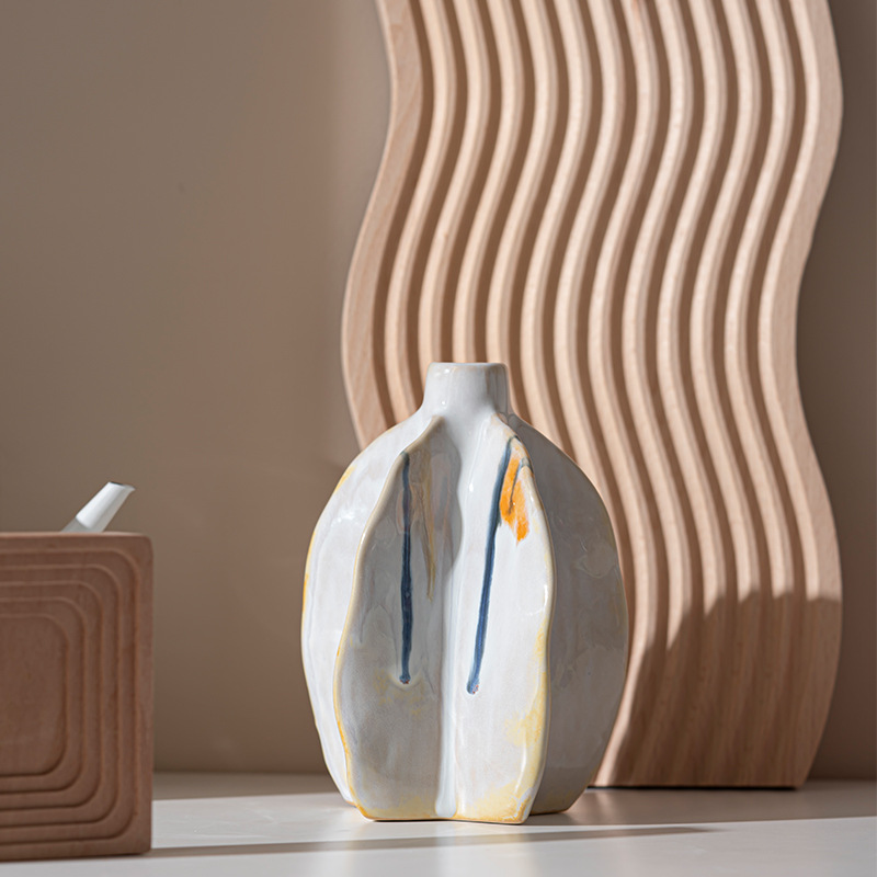 Lemeng White Glaze Star Fruit Vase High-end Decorative Ornaments Living Room Kitchen Flower Arrangement Home Soft Decoration