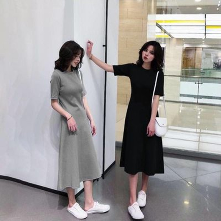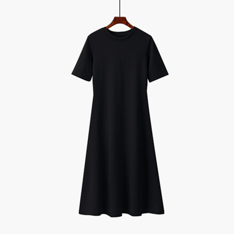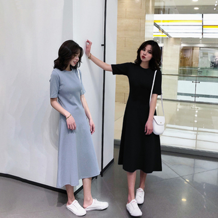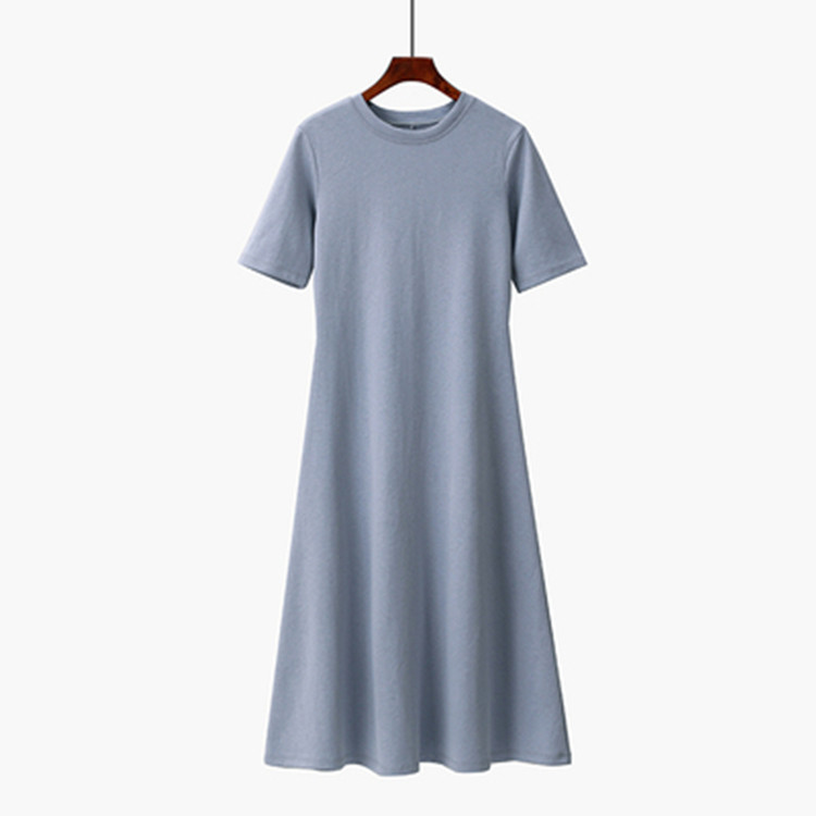 Summer Women's Clothing Short-sleeved Base Solid Color Dress Long Skirt Casual Short-sleeved Lazy Style A-line Skirt