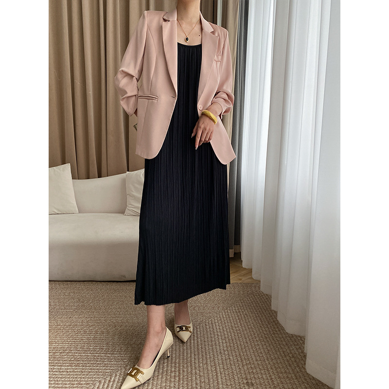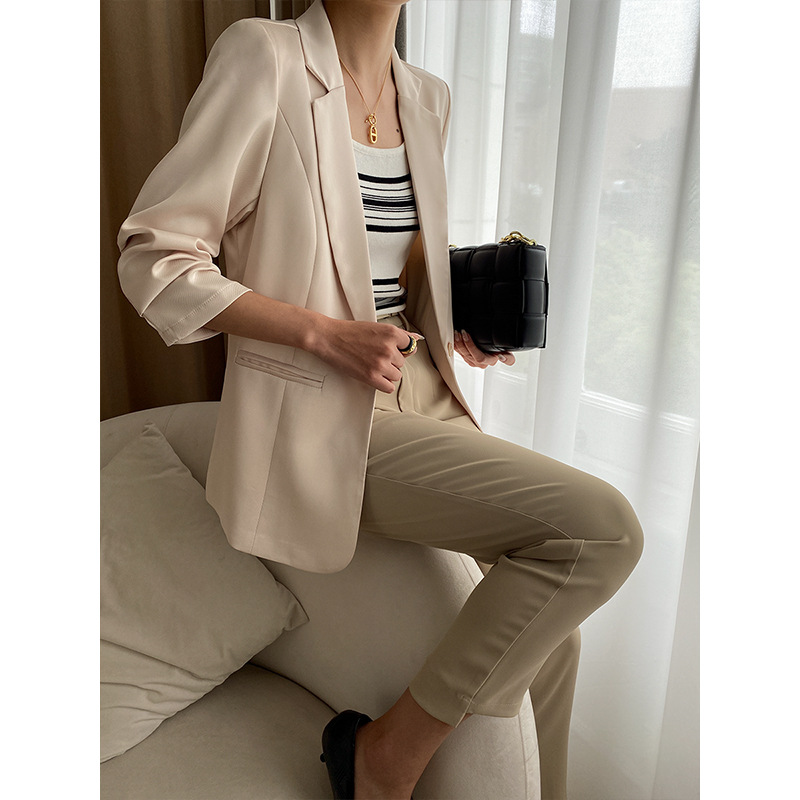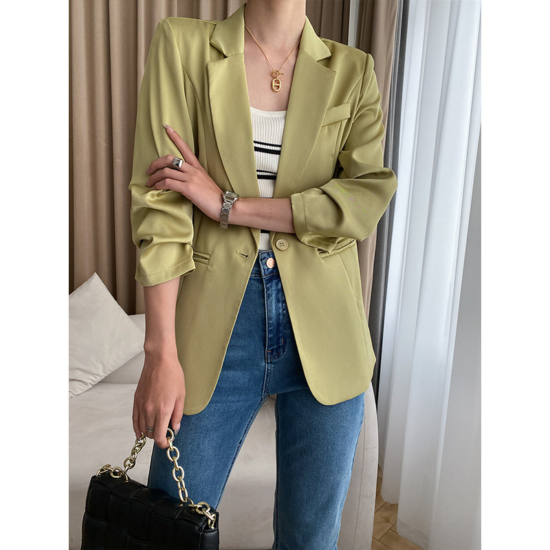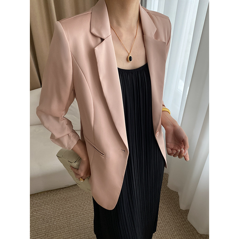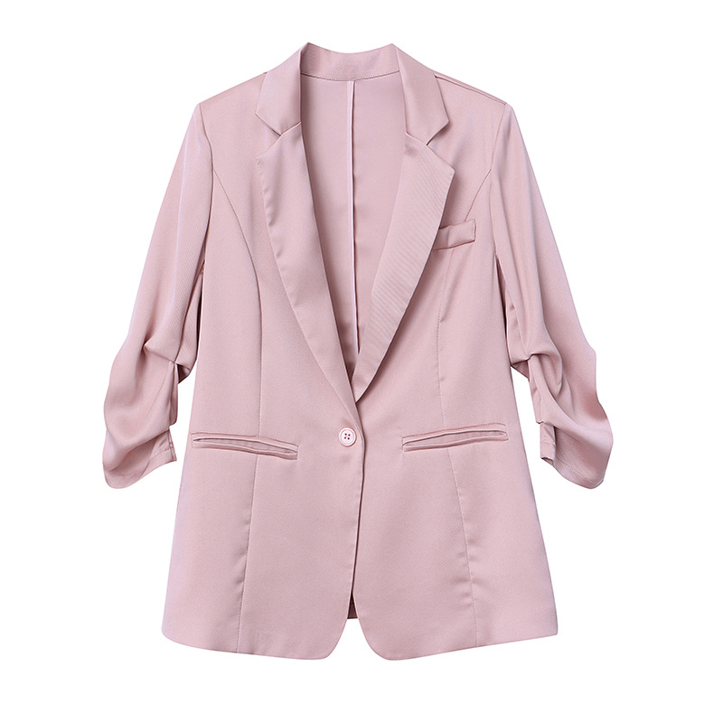 Sinan Glossy Twill Satin Three-quarter Pleated Sleeves Light Luxury Thin Summer Sunscreen Suit Jacket SN3223