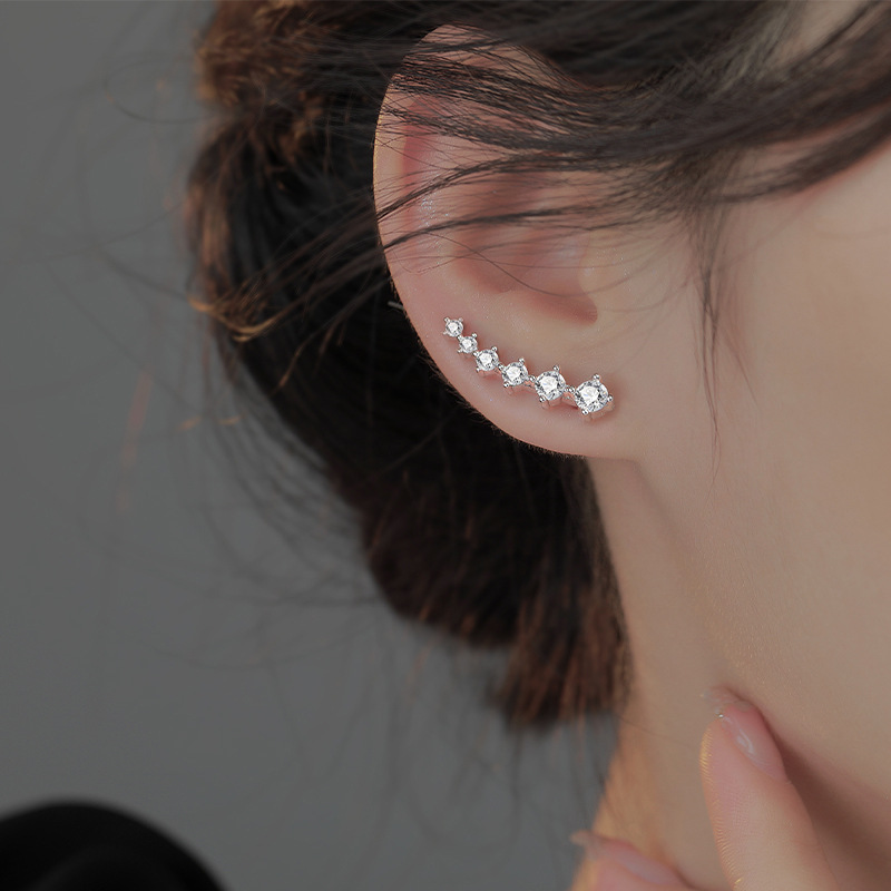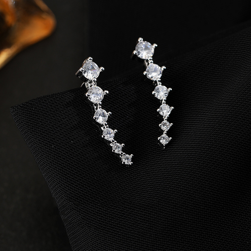 APair Of Earrings For Two Wears,Best-selling Style,One-line Zircon Ear Hook,Korean Creative One-row Diamond Earrings For Women