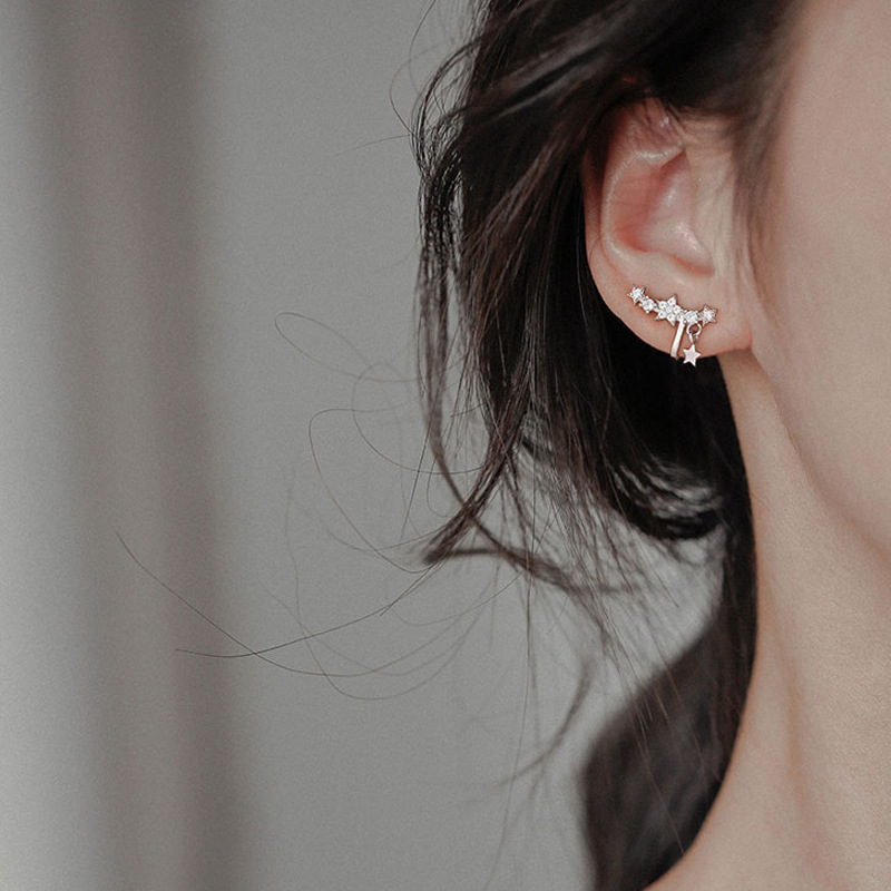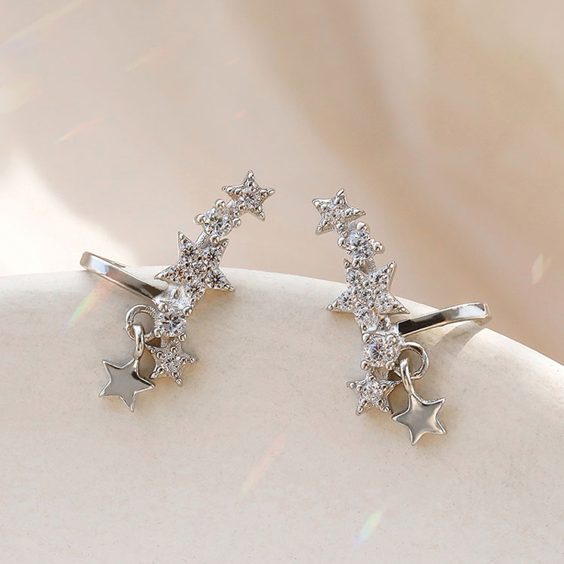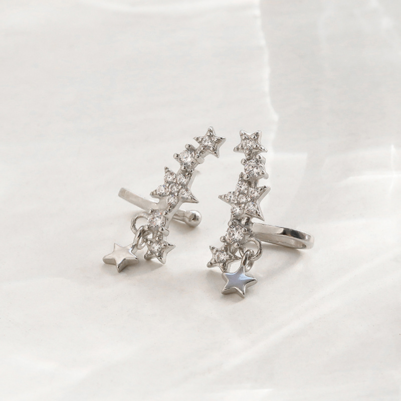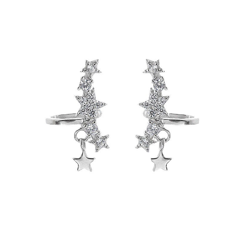 Korean Style Temperament Starry Sky Earrings Sparkling Diamond Temperament Tassel Star Ear Clip No Ear Piercing All-match Painless Fake Earrings